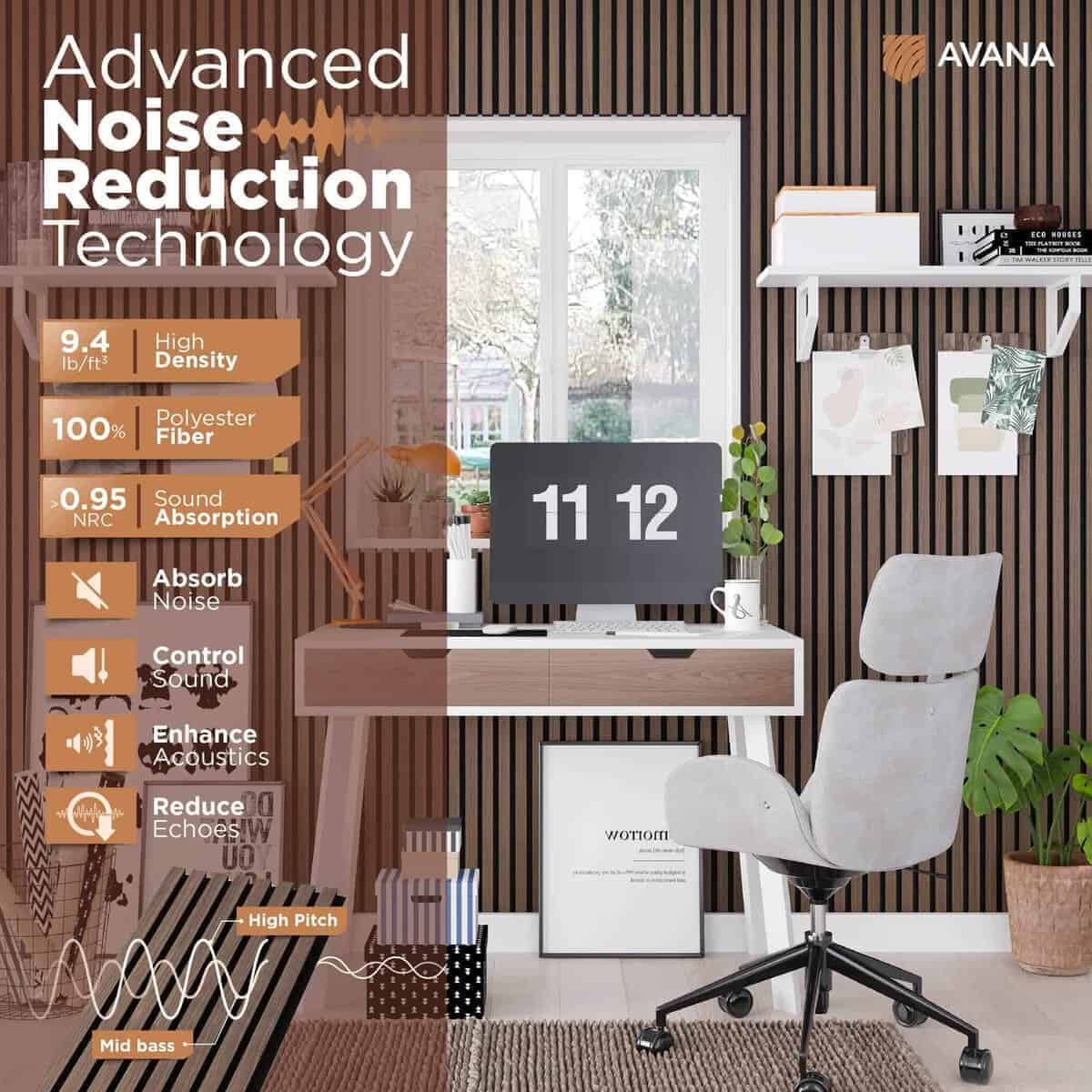 Los paneles de pared acústicos de madera Avana Modern son la elección ideal para aquellos que buscan una experiencia auditiva superior y un diseño estéticamente agradable. Con un rendimiento acústico impecable, estos paneles de pared de lamas están diseñados para proporcionar una cancelación de ruido superior en una variedad de entornos, incluidos hogares, oficinas y estudios. El panel de pared de lamas de nogal Avana crea un entorno acústicamente equilibrado, mejorando la claridad del sonido y creando un ambiente de audición cómodo y agradable. Además de sus habilidades acústicas excepcionales, estos modernos paneles de pared decorativos añaden un toque de elegancia natural a cualquier habitación. El encanto del panel de madera agrega calor y sofisticación, transformando instantáneamente el espacio en un refugio de atractivo estético. La instalación de los paneles de pared Avana es rápida y sencilla, ya que se pueden montar en paredes o techos con facilidad, agregando una mejora acústica inmediata al entorno. Hechos con materiales seguros y respetuosos con el medio ambiente, como el tablero de fibra de densidad media (MDF) de calidad y la fibra de poliéster de alta densidad, estos paneles de madera garantizan un rendimiento acústico óptimo y mantienen bajas emisiones químicas. El tamaño conveniente del paquete de dos proporciona versatilidad y opciones de finalización para satisfacer las necesidades individuales de cada cliente. Mejora tu espacio con los paneles de pared acústicos de madera Avana Modern y disfruta de un entorno acústico equilibrado, elegante y funcional.