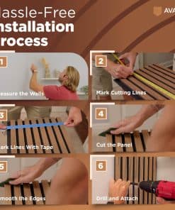 2. Instalación Sencilla – Simplifique su camino hacia la excelencia acústica con la decoración de paredes Avana paneles. Disfrute de la conveniencia de una instalación rápida y fácil de paneles de madera. Ya sea montados en paredes o techos, estos paneles de madera para pared aportan una mejora acústica instantánea a su espacio. Diga adiós a los procesos de instalación complejos y abrace una experiencia libre de problemas con los paneles de insonorización de pared Avana que le ahorran tiempo, asegurando que su viaje acústico comience con paneles acústicos de pared de listones de madera.