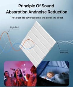 Eleva tu espacio con nuestros paneles acústicos premium diseñados para minimizar ecos no deseados, ondas y reverberaciones. Disfruta de sonidos ambientales mejorados y una experiencia auditiva como nunca antes. Estos versátiles paneles acústicos no solo mejoran el sonido, sino que también sirven como decoración elegante que combina estilo y funcionalidad. La instalación es sencilla gracias al respaldo autoadhesivo que elimina la necesidad de pegamento adicional. El material de poliéster es fácil de cortar y se puede aplicar sin problemas en diversas superficies como paredes, puertas, tela y vidrio. Transforma sin esfuerzo estudios, oficinas, aulas, dormitorios y teatros de entretenimiento con estos paneles de amortiguación de sonido. Adapta los paneles a tus necesidades únicas, ya sea en techos o detrás de televisores. Además, disfruta de la tranquilidad añadida de nuestra característica resistente al fuego, priorizando la seguridad en tu espacio. Fabricados con fibra de poliéster 100% de alta densidad 230KG/m3, estos paneles insonorizantes tienen una impresionante calificación NRC de hasta 0.95, demostrando nuestro compromiso con el uso de materiales seguros, no tóxicos e inodoros. Nuestro equipo de soporte al cliente está aquí para ayudar con cualquier consulta o soporte que puedas necesitar. Con estos innovadores paneles de reducción de ruido, estás invirtiendo en una experiencia auditiva y estética elevada para tu espacio. ¡Transforma tu entorno y disfruta de los beneficios hoy!