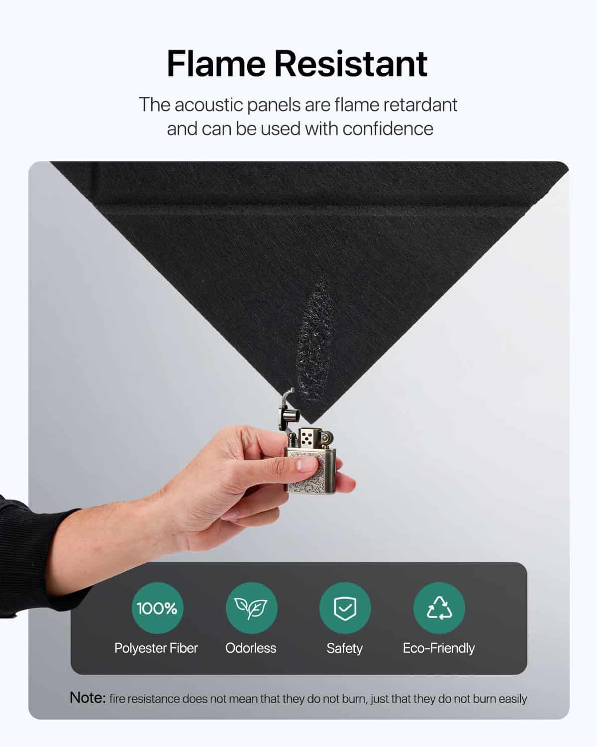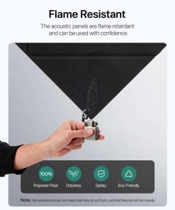 3. Materiales de Alta Calidad — Los paneles acústicos absorbentes de sonido están hechos de fibra de poliéster 100%, retardante de llama Clase B1.