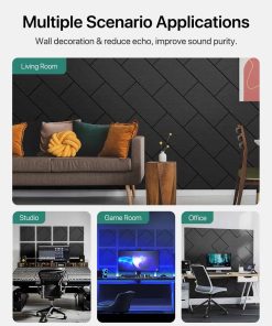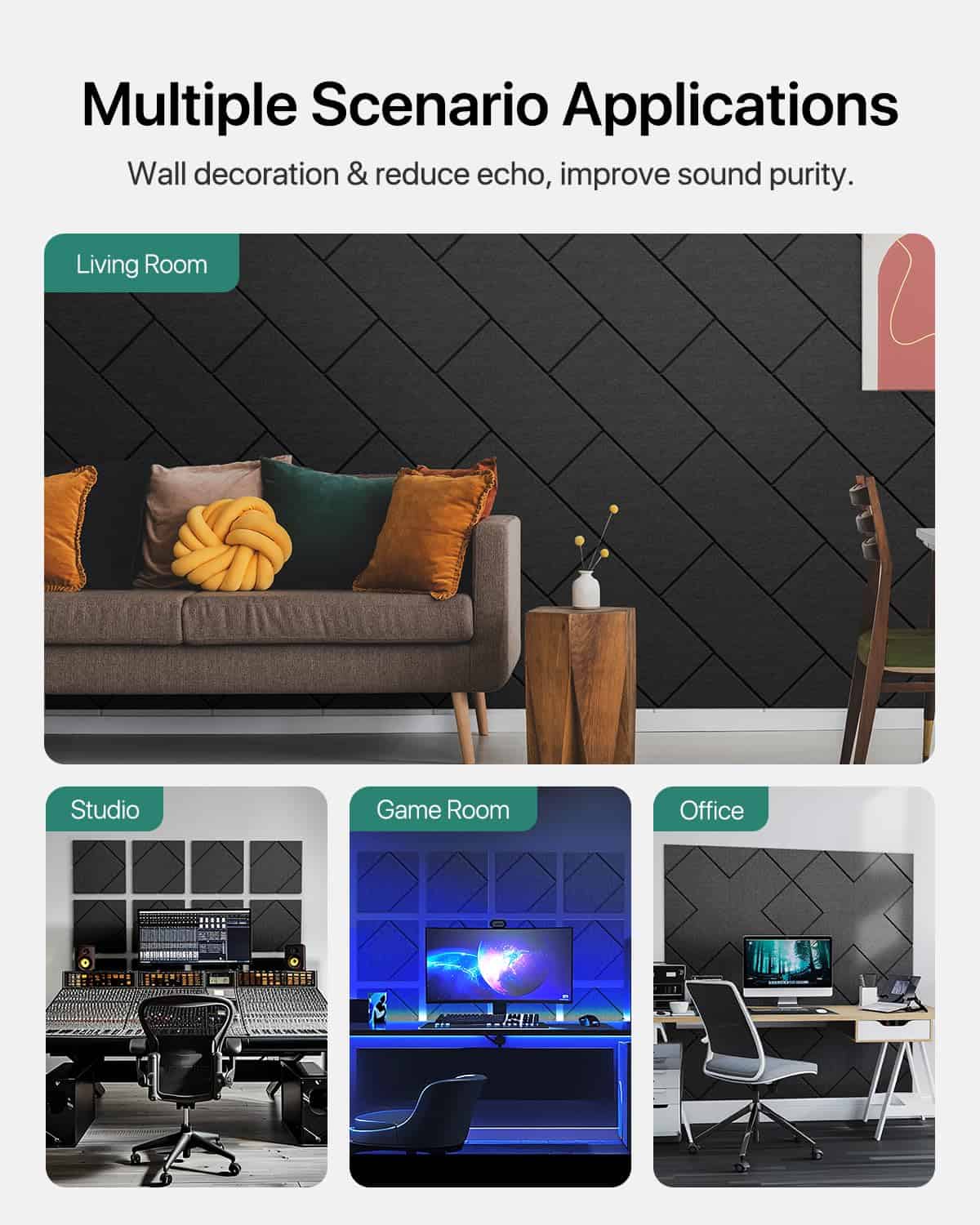 6. Ampliamente Utilizado — Excelente tratamiento de la acústica de estudio. Estos paneles acústicos son versátiles y se pueden utilizar en estudios profesionales, salas de ensayo, salas de conciertos, podcasts, cabinas vocales, estudios caseros, oficinas y más. Al utilizar paneles acústicos para eliminar sonidos no deseados, puedes hacer que otros sonidos sean más claros.