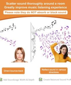 El Panel de Difusión Acústica TroyStudio es un excelente material de difusión de sonido de banda ancha. Su apariencia atractiva, rendimiento acústico excepcional, así como su precio razonable lo convierten en la elección perfecta para la acústica de una habitación. Mejora de Acústica 1. Mejora de la Uniformidad del Campo de Sonido Este producto puede dispersar el sonido de manera uniforme cuando éste lo impacta, asegurando la uniformidad del campo sonoro en su espacio. Cuanta más uniformidad distribuye la energía sonora, mejor se presentan la claridad vocal y el detalle musical. 2. Solución a Problemas Acústicos Al romper la onda de sonido y reflejarla en diferentes direcciones, este difusor hace un excelente trabajo para cancelar ondas estacionarias y ecos reverberantes. En comparación con la absorción de sonido, que también es una solución a estos problemas, la difusión no elimina la energía sonora, manteniendo así la viveza acústica en el espacio. Ideal para DIY Ligero, de tamaño pequeño, fácil instalación. Todos estos elementos hacen que sea fácil para usted diseñar su propia área de difusión como desee. ¡Cuando se trata de acústica, somos profesionales! En lugar de dejar a los clientes solos, realmente nos preocupamos por sus problemas. Los problemas acústicos suelen ser complicados, por lo que por favor hable con nosotros acerca de sus dificultades, ¡y le proporcionaremos una solución completa!