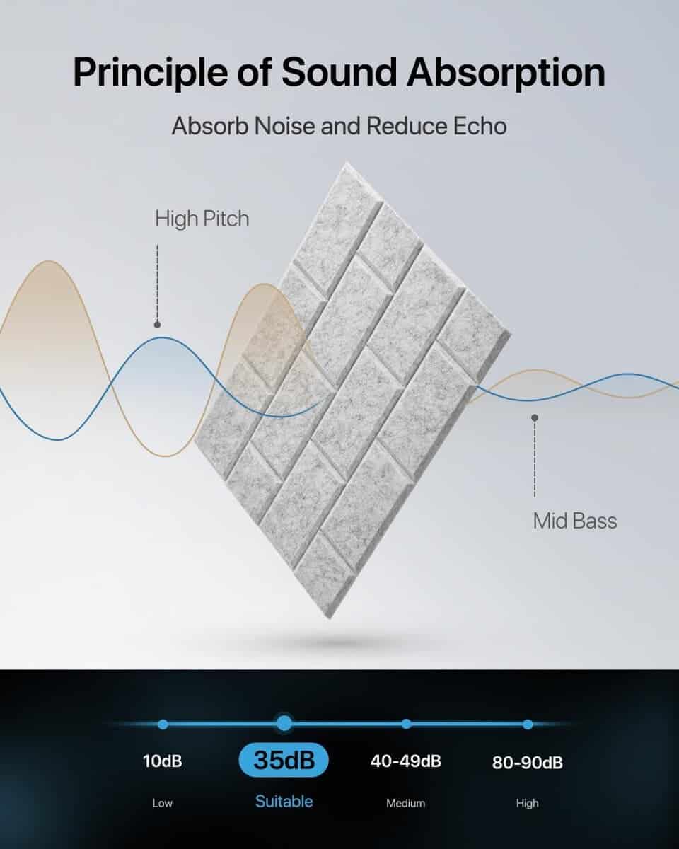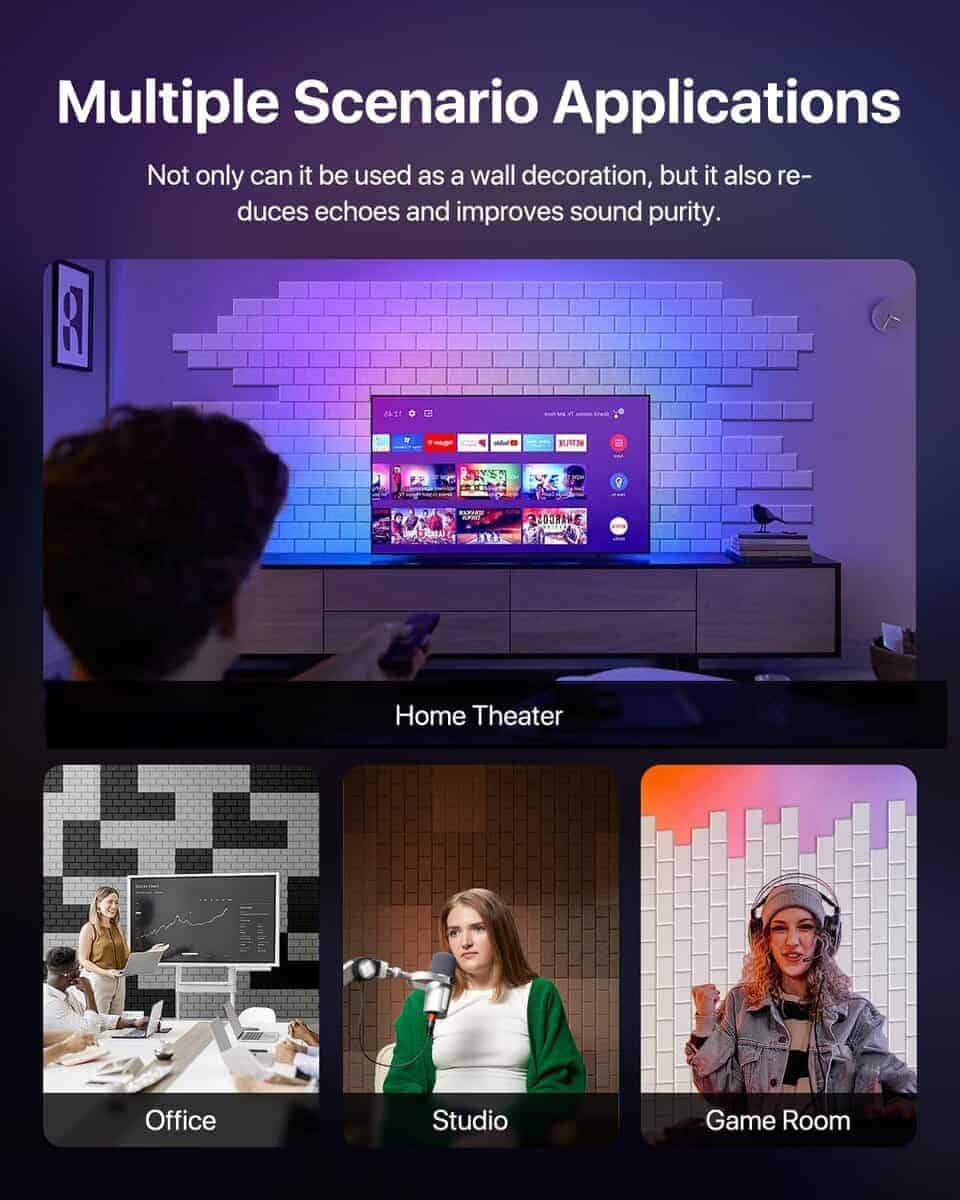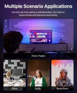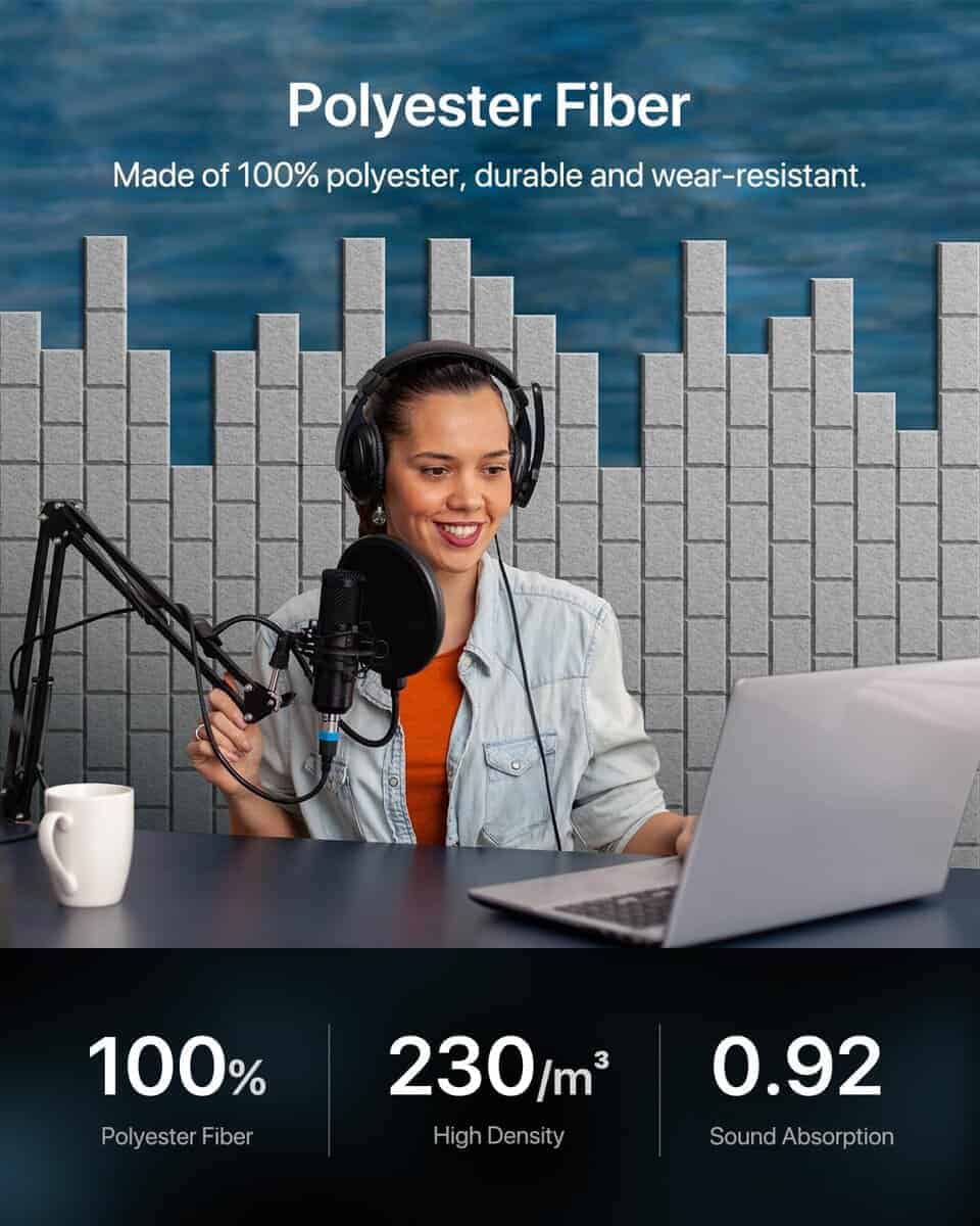 Paneles insonorizantes de alta calidad, diseñados para capturar y absorber eficazmente las vibraciones de aire en las ondas de sonido, reduciendo la reflexión del sonido y el eco para mejorar la claridad y pureza del sonido. Los paneles acústicos autoadhesivos se destacan por su diseño de ladrillo que agrega belleza al interior, complementa diferentes estilos de decoración y proporciona absorción de sonido junto con un atractivo visual. Hechos de material de fibra de poliéster duradero y resistente al desgaste, estos paneles son seguros de usar, ya que están fabricados con botellas de plástico reciclado. Su instalación es sencilla, ya que son autoadhesivos y se pueden aplicar en paredes, puertas, ventanas y techos sin necesidad de herramientas adicionales. Se incluyen instrucciones sobre el desmontaje en caso de necesitar retirar los paneles. Estos paneles acústicos se pueden personalizar y ensamblar en diferentes formas para adaptarse a sus necesidades de diseño. Su amplia aplicación en hogares, oficinas, estudios de grabación, transmisiones en vivo y salas de conferencias contribuye a mejorar la calidad del sonido y la comodidad en el entorno acústico. Con una cobertura de 16 pies cuadrados, estos paneles son ideales para lograr una reducción de ruido efectiva en diversas aplicaciones.