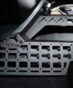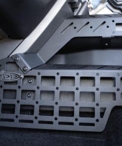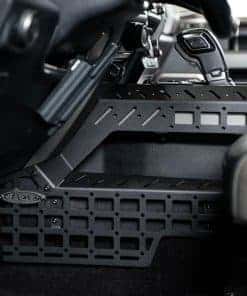 Nuestros Paneles Molle de Consola Central y Soporte Digital para Dispositivos fueron diseñados para añadir utilidad a la cabina mientras complementan el estilo interior OEM. El kit incluye paneles molle para el lado del conductor y del pasajero, perfectos para almacenar elementos de uso diario como un portaherramientas, multiherramienta, micrófono de radio y otros elementos. El molle es compatible con varios sistemas de fijación como soportes molle, correas, pernos de pulgada u otras soluciones tácticas. Los bordes superiores de los paneles y las placas de puente adyacentes cuentan con puntos de accesorios PEM compatibles con los soportes de dispositivos Ram Mounts. Aquí, puede organizar sus dispositivos digitales en una ubicación conveniente mientras se desplaza. Ideal para su teléfono inteligente, GPS, tableta u otro equipo. Todos los paneles están acabados con un revestimiento en polvo negro martillado de doble etapa. Como siempre, estos están hechos en América. 3 Configuraciones Posibles: Paneles Laterales Solamente – Los Paneles Molle Laterales se pueden instalar por sí solos, sin el puente. Esto le ofrece opciones de montaje molle, así como los rieles laterales superiores que son compatibles con los soportes de dispositivos Ram Mounts. Paneles Laterales y Puente – Esta configuración le proporciona la máxima utilidad, ofreciendo abundantes opciones de montaje molle y ubicaciones versátiles para montar dispositivos tanto en los lados como en el centro de la consola. Solo Puente – Aunque el Puente de Dispositivos se puede instalar por sí solo, le recomendamos encarecidamente que instale los paneles laterales junto con el puente para obtener el aspecto más limpio.