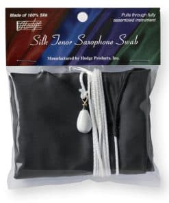 Los paños para saxofón de seda están diseñados para pasar por completo a través del saxofón completamente ensamblado. No es necesario quitar el cuello o llevar un paño separado para el cuello. Esto es de gran conveniencia. Los paños para saxofón tenor están diseñados de la misma manera que los paños para saxofón alto, pero con un cordón más largo y un peso mayor.