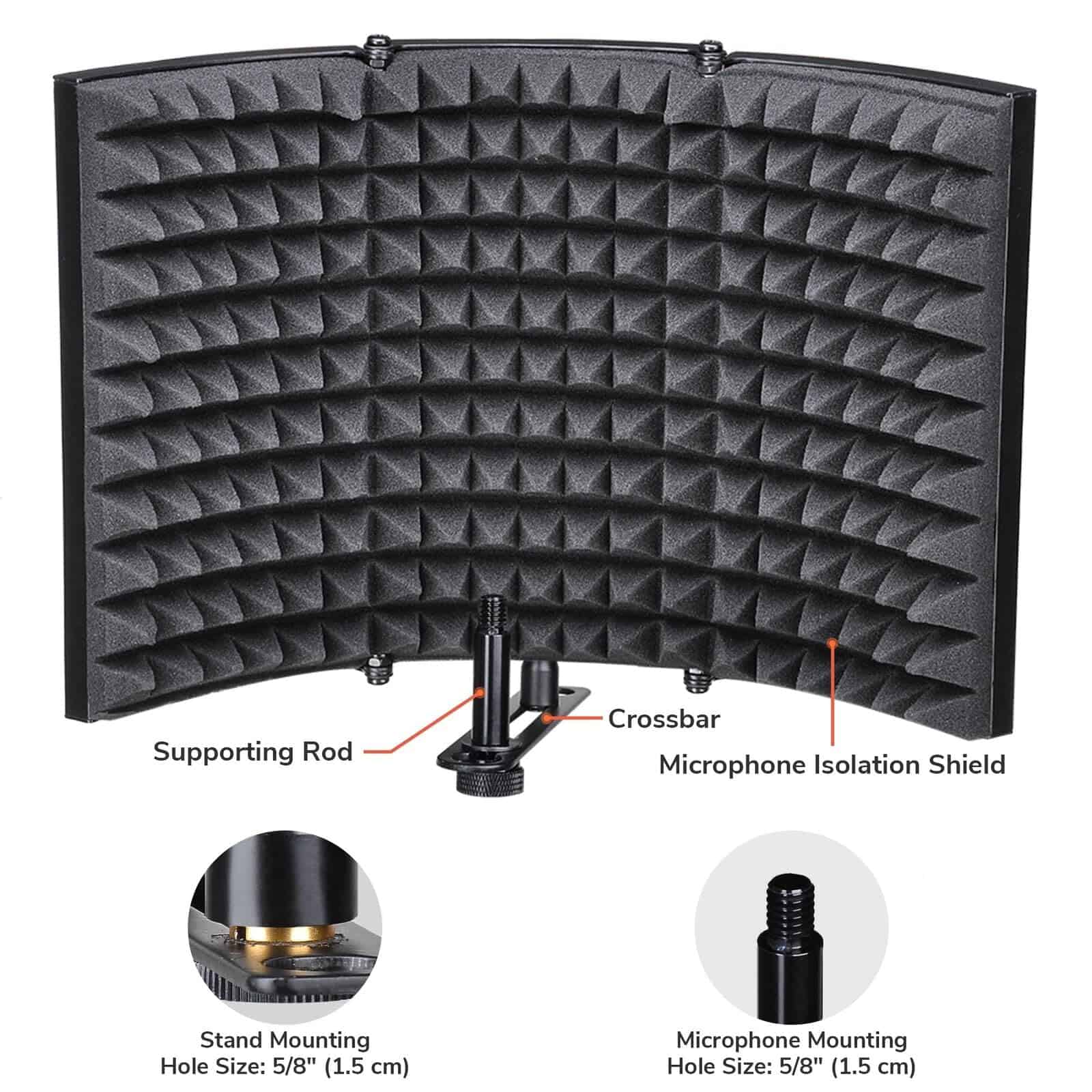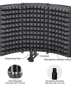 Adopte material confiable: fabricado con cubierta de plástico ABS duradero y espuma de alta densidad, el panel garantiza resistencia y durabilidad, funciona muy bien para eliminar el ruido para un ajuste claro. Trabaje de manera efectiva: adopta 3 capas: capa absorbente para la prevención de la reflexión del sonido, capa de filtro para la filtración de ruido externo, capa reflectante para la reducción de voz no deseada. Llévelo fácilmente a cualquier lugar: con un diseño de varios paneles, este ligero escudo a prueba de sonido permite plegarlo con facilidad, lo que lo hace portátil. Úselo con comodidad: el escudo absorbente de sonido puede equiparse con un micrófono mediante tornillo de 3/8 de pulgada, utilizado de manera estable en la mesa o montado rápidamente en el soporte a través de la tuerca de 5/8 de pulgada. Amplia utilidad: con un excelente rendimiento, este filtro de reflexión de sonido es adecuado para grabación de estudio, transmisión en vivo, voces, canto y más.