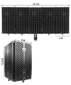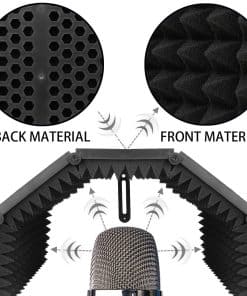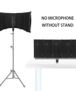 Esta pantalla de aislamiento de micrófono puede ofrecerte una voz clara y aislada para tu estudio de VO. Obtén voces limpias de cerca. Funciona como un profesional y graba en un estudio real. La pantalla de aislamiento cuenta con espuma de amortiguación de sonido que ayuda a evitar que los sonidos no deseados contaminen tus grabaciones. La cabina de aislamiento del estudio te ayudará a lograr un sonido más nítido y limpio, preferido por la mayoría de los profesionales de la música. El filtro de sonido para estudio crea un límite acústico alrededor del micrófono que mejora el flujo de audio vocal. Dirige tu voz hacia el micrófono y, al mismo tiempo, evita que las reflexiones de la sala entren directamente en la zona de grabación. Las ondas de audio no deseadas del exterior y las vibraciones, también conocidas como interferencias, están blindadas mientras tu voz llega a tu micrófono. La pantalla acústica cuenta con un frente de espuma acústica y una placa trasera ventilada. Los dos paneles exteriores se pueden plegar hacia adentro para almacenarlos o para crear una cámara de aislamiento acústico más ajustada. Notas de Instalación Fácil de configurar y cerrar, lo que facilita el transporte. La pantalla de aislamiento de micrófono para grabación de estudio se puede fijar en una mesa o escritorio. O instala directamente el filtro de reflexión del micrófono en el soporte de micrófono. Escena Aplicable ¡Regalo perfecto para grabación de sonido de estudio, podcasts, voces, canto, radiodifusión para filtrar voces con tu micrófono favorito! Como Blue Yeti, Yeti Nano, Snowball, micrófono Audio-Technica AT2020, etc. Paquete Incluye: 1 Pantalla de Aislamiento de Micrófono 1 Adaptador (Compatible con tamaños de tornillos de 3/8″ y 5/8″) Notas: ¡El paquete no incluye el Micrófono, Soporte para Micrófono, Montura de Choque!