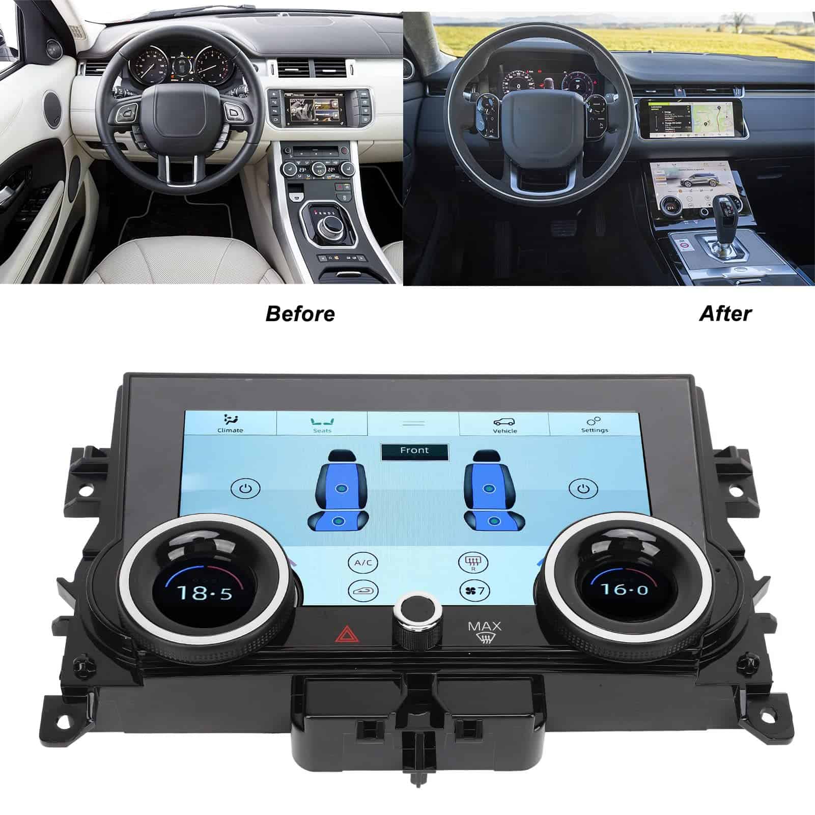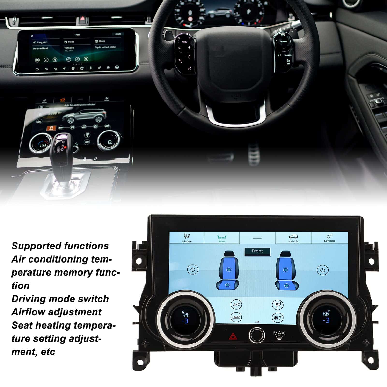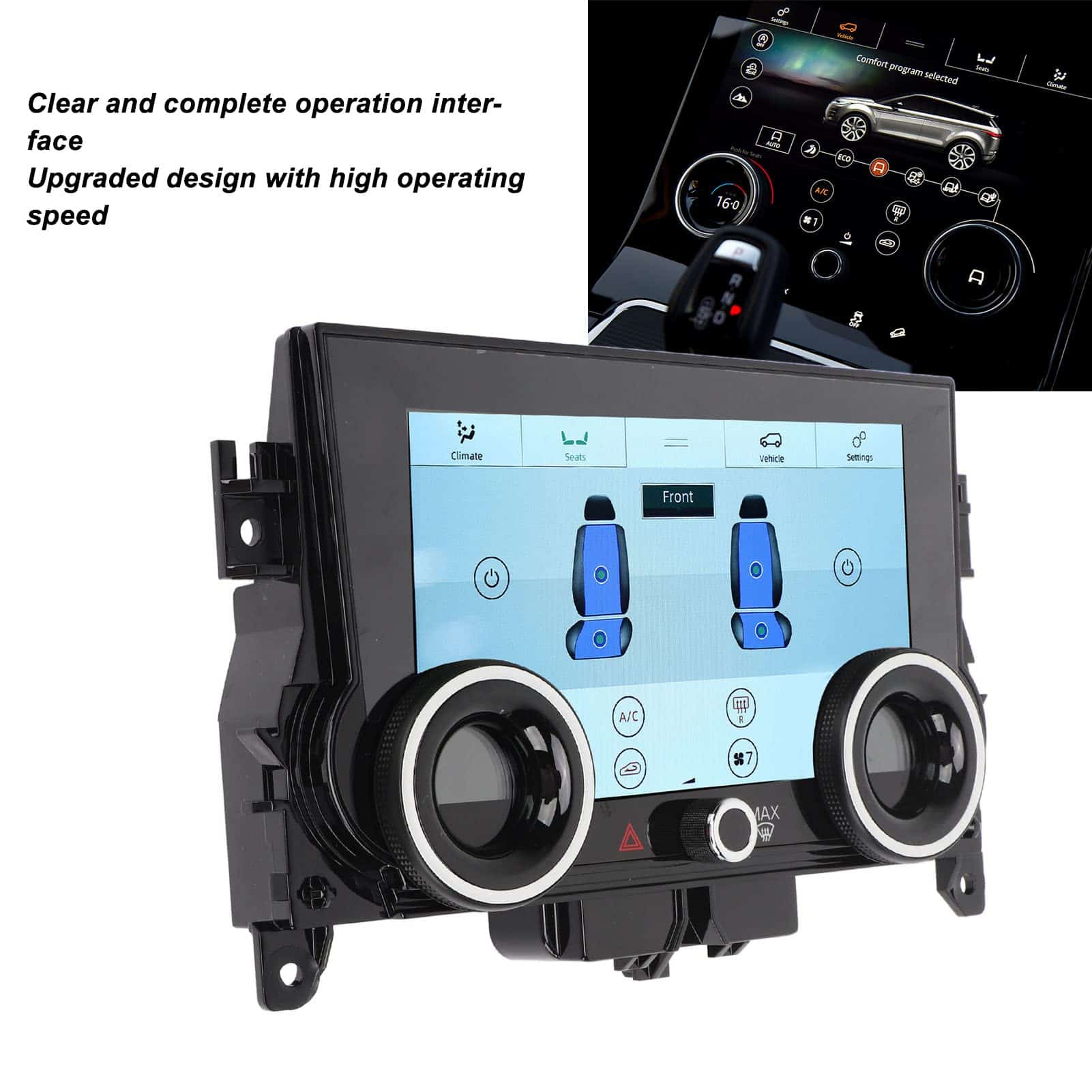 Característica: Modelos Aplicables: La pantalla LCD del control del clima del coche es un reemplazo para Land Rover Range Rover Evoque L538 2012-2018. Material: La pantalla de control de aire acondicionado del coche está hecha de material ABS y metal. Buena calidad no solo puede proporcionar una garantía más segura para tu vida, sino que también buenos materiales pueden aumentar la vida útil del producto. Control Táctil: Pantalla táctil LCD de 7 pulgadas de alta definición, imagen clara, operación suave y respuesta rápida, brindándote un efecto de uso flexible. Características: La interfaz de operación de la pantalla del panel de calefacción del aire acondicionado del coche es clara y completa, y la pantalla es un buen ayudante inteligente para tu conducción. Instalación Profesional: La instalación de la pantalla de control del aire acondicionado del coche no es difícil, no dañará el panel de control original del coche, se recomienda la instalación profesional. Especificación: Tipo de Elemento: Pantalla Táctil de Aire Acondicionado para Coche Material: ABS, metal Voltaje de Operación: DC 9-16V Tamaño de Pantalla: 7 pulgadas Soporte para Idiomas: Inglés Funciones del Producto: Función de memoria de temperatura del aire acondicionado Cambio de modo de conducción Ajuste del flujo de aire Ajuste de la temperatura del asiento calefaccionado, etc. Modelos Aplicables: Repuesto para Land Rover Range Rover Evoque L538 2012-2018 Lista de Paquetes: 1 x Pantalla de Control de Aire Acondicionado para Coche 1 x Cable de Alimentación