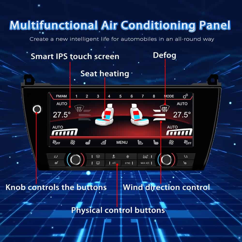 Pantalla táctil LCD de 10 pulgadas de alta definición 1920×720, más grande y clara. Pantalla táctil IPS inteligente, suave al tacto. 3 interfaces de usuario pueden cambiarse a voluntad. Se adopta un chip inteligente de alto rendimiento AI. Bajo consumo de energía y alta calidad. Reemplace la placa de aire acondicionado original del vehículo de botones y obtenga la última interfaz de control de aire acondicionado táctil LCD. Garantía de un año, manual de instalación incluido en el paquete. También ofrecemos instrucciones de instalación en línea y ayuda en línea.