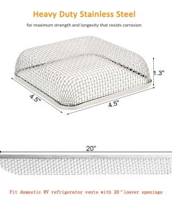 Pantalla de insectos para calentadores de RV fabricada con acero inoxidable resistente, material de alta resistencia, producto combinado, multiusos, más rentable. La pantalla de 20″ x 1-1/2″ se ajusta a las rejillas de ventilación del refrigerador Dometic que tienen aberturas de louver de 20 pulgadas de largo. Otras se ajustan a los calentadores Atwood Hydroflame que no tienen puertas de acceso, y a la salida de escape del calentador de agua sin tanque Girard. El producto no está patrocinado ni respaldado por Atwood Hydroflame. Contamos con una herramienta de instalación especial que es fácil de operar y está lista para instalar la pantalla de malla de ventilación de calentadores de RV en cualquier momento. Protege los calentadores de RV de criaturas externas y evita daños en las rejillas de ventilación de RV. Proveedor de piezas confiable de varios años, un producto combinado más valioso.