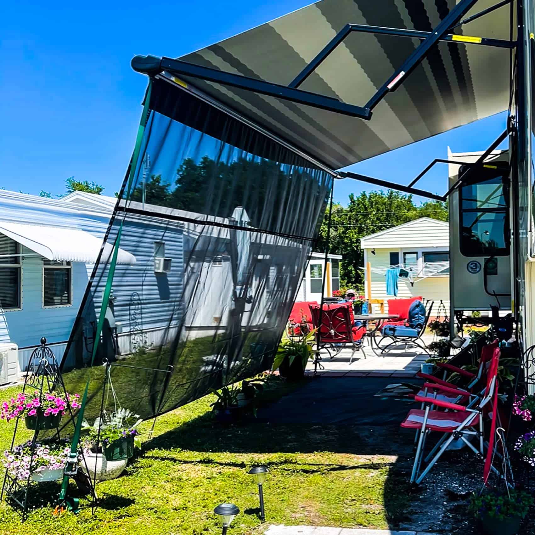 3. Protección multifuncional: Nuestras Pantallas de Sombra para Toldo de RV ofrecen más que solo sombra y privacidad. También protegen contra el viento, la lluvia y el polvo, asegurando un espacio al aire libre cómodo y seco mientras mejoran su vista desde el interior.