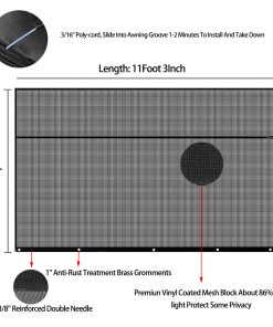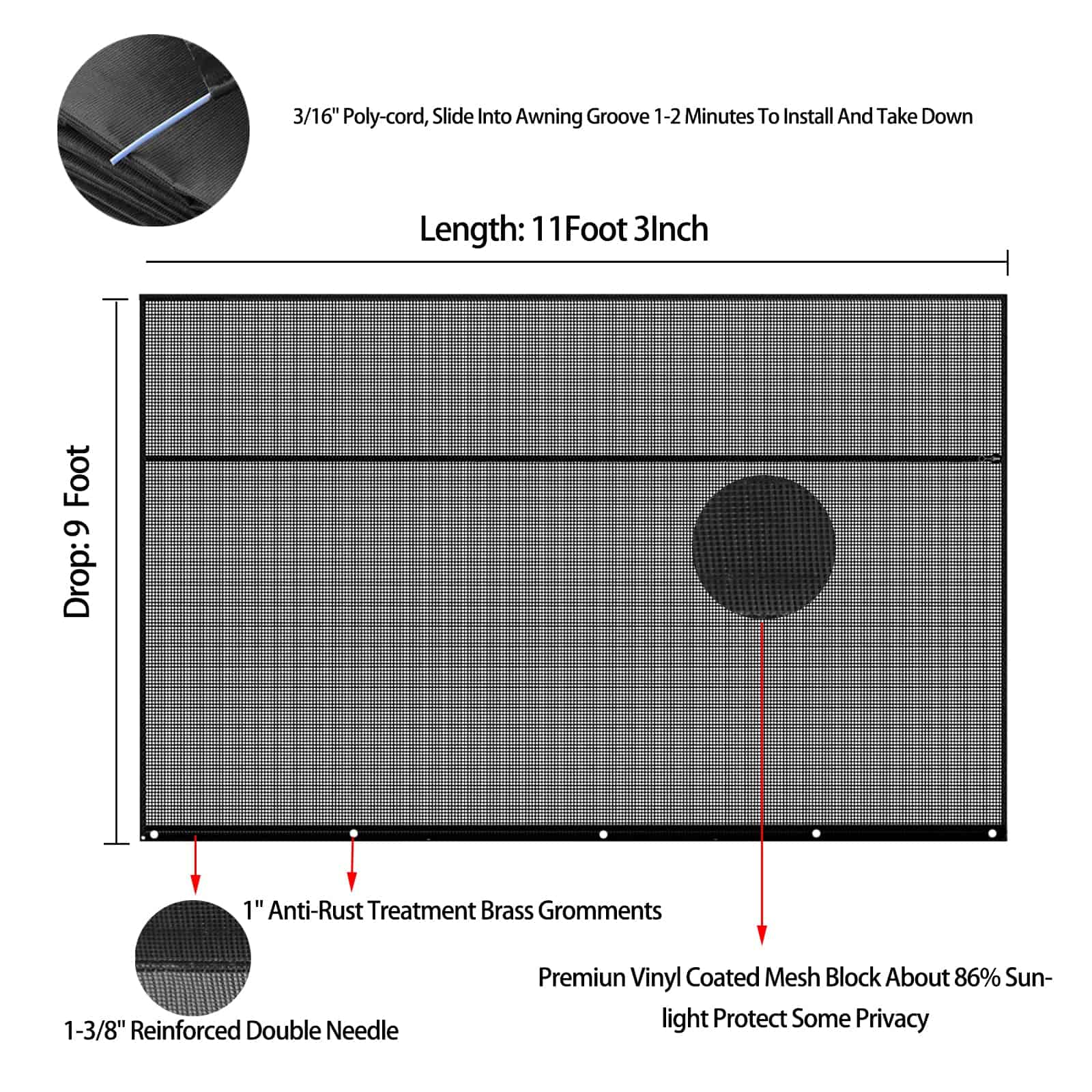 1. Ultima protección solar y privacidad: Nuestro Reemplazo de Toldo de RV, fabricado con vinilo de alta densidad 230g/m , ofrece una capacidad de carga de 8.2oz/ . Con malla de 600D que bloquea hasta el 88% de los rayos UV, disfrute de una protección solar superior y privacidad.