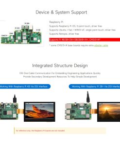 Visión GeneralPantalla DSI LCD de 4.3 pulgadasResolución de 800480 Pantalla táctil capacitiva de 5 puntos para Raspberry Pi, IPS Wide Angle, Interfaz MIPI DSICaracterísticas1. Soporta Pi 4B/3B+/3A+/3B/2B/B+/A+, CM3/3+, se requiere placa de adaptador adicional2. Al trabajar con Raspberry Pi, soporta varios sistemas. Soporta Raspbian, pantalla táctil de 5 puntos, sin necesidad de controlador. Soporta Ubuntu / Kali / WIN10 IoT, pantalla táctil de un solo punto, sin necesidad de controlador. Soporta Retropie, sin necesidad de controlador3. Esta pantalla de 4.3 pulgadas con interfaz DSI, tasa de refresco de hasta 60Hz.4. Panel táctil capacitivo, soporta pantalla táctil de 5 puntosContenido del PaquetePantalla DSI LCD de 4.3 pulgadas x1FPC 15PIN 1.0 pitch 50mm (lados opuestos) x1Paquete de tornillos x1Conexión de HardwareConecta la interfaz DSI de la pantalla DSI LCD de 4.3 pulgadas a la interfaz DSI de Raspberry Pi.Para un uso fácil, puedes fijar la Raspberry Pi en el lado posterior de la pantalla DSI LCD de 4.3 pulgadas con tornillosConfiguración de SoftwareDescarga la imagen (Raspbian, Ubuntu, Kali o WIN 10 IOT) desde el sitio web de Raspberry PiDescomprime el archivo para obtener el archivo .img (el método de instalación de WIN 10 IOT es diferente, por favor consulta su sitio web)Inserta tu tarjeta TF en la PC utilizando un lector de tarjetas, formateala primeroEscribe el archivo .img en tu tarjeta TF utilizando Win32DiskImager o EtcherDespués de escribir, inserta la tarjeta TF en tu Raspberry PiEnciende la Raspberry PiNota: Se proporciona Soporte Técnico, por favor contáctanos si tienes algún problema.