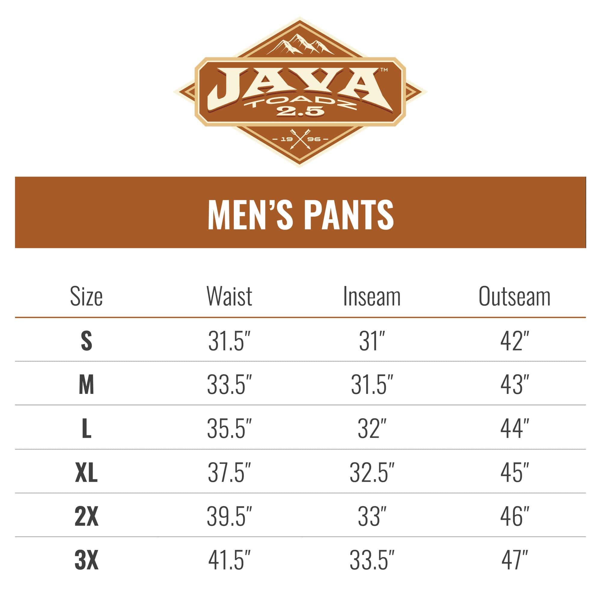 El pantalón Frogg Toggs Java Toadz 2.5 es un pantalón resistente al agua perfecto para la pesca, caza, senderismo, camping y más aventuras al aire libre. La cintura ajustable y elástica brinda un ajuste personalizado y cómodo. Los pantalones cuentan con bolsillos con acceso pasante que proporcionan un amplio espacio de almacenamiento para necesidades personales y al aire libre. Las aberturas con cremallera en las piernas permiten un fácil poner/quitar sobre la ropa diaria del usuario. Los pantalones vienen en estampado negro y camuflaje. El estampado de camuflaje es perfecto para la caza.