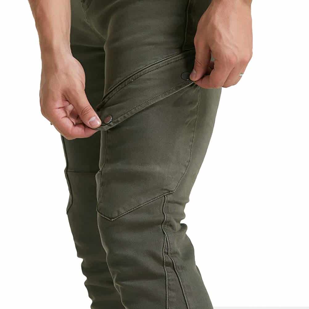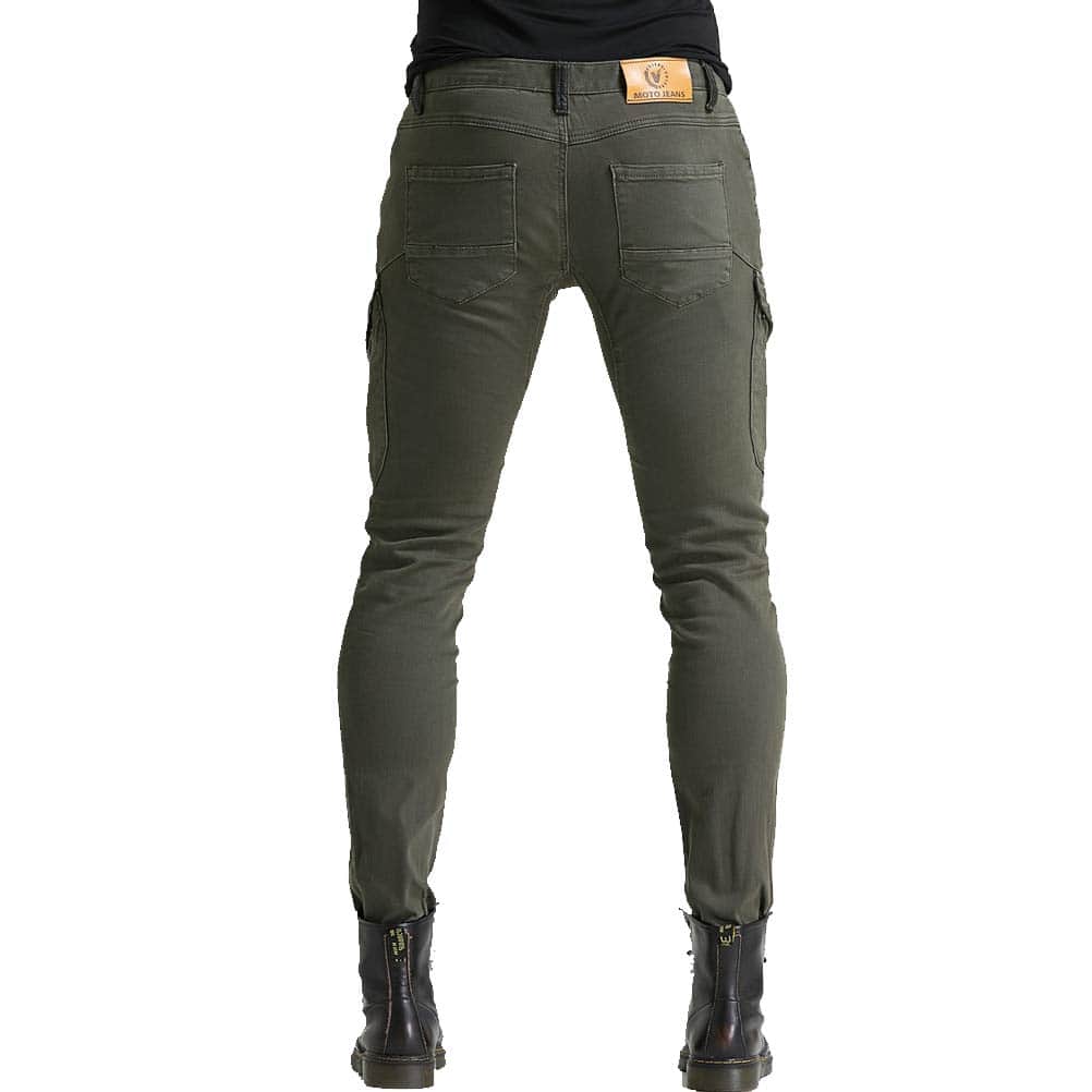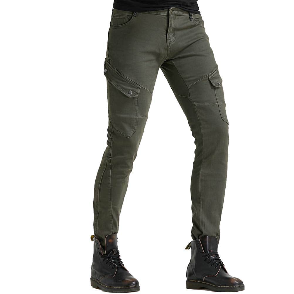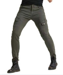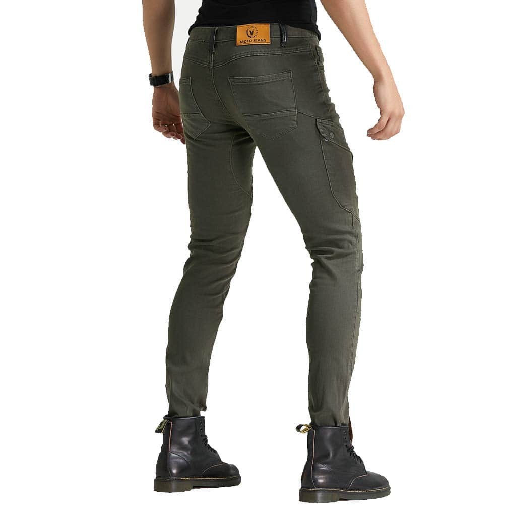 Incluye: 1 X Pantalones de moto + 2 X Protectores de rodilla + 2 X Protectores de cadera. Material: Denim de 14 oz, 97% Algodón 3% Spandex. Color: Verde Militar, Negro. Tallas: S 28, M 30, L 32, XL 34, XXL 36, XXXL 38. Características: Diseño de moda y seguridad al montar, 4 protectores de rodilla y cadera, perfecto para moto y uso diario. Certificación de Equipos de Protección de Moto CE EN1621-1: 1997 de la Unión Europea. Diseño plegable de rodilla y cintura trasera para mayor flexibilidad.