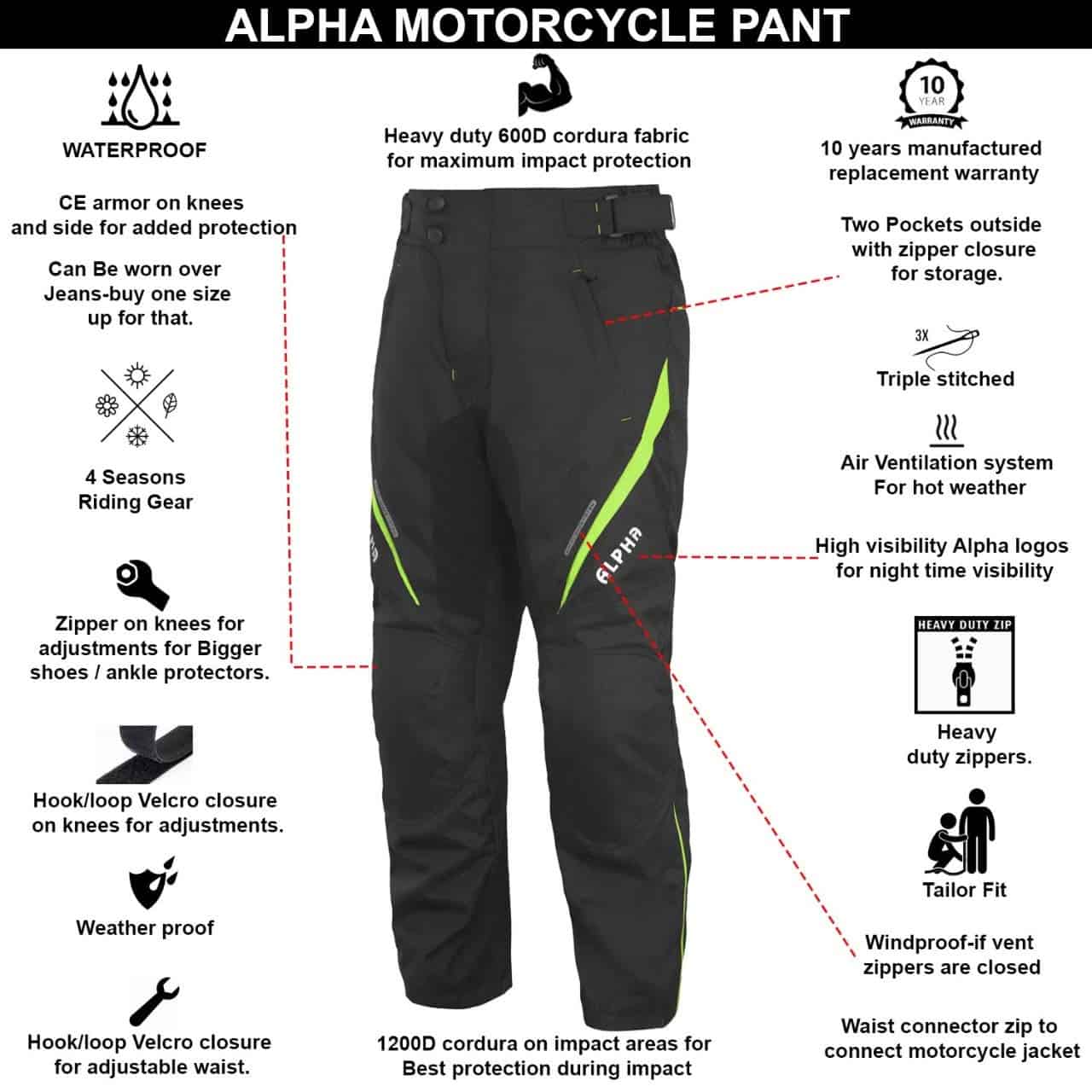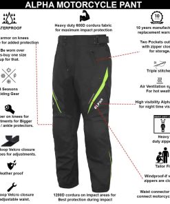 Estos pantalones de moto son ideales para todas las estaciones y para la práctica de motocross, offroad, touring, aventura y enduro. Son impermeables y cuentan con protección CE Armor para mayor seguridad. El color verde le da un toque vibrante y moderno a tu equipo de motociclismo. Disfruta de la comodidad y protección que estos pantalones ofrecen en tus aventuras en moto.