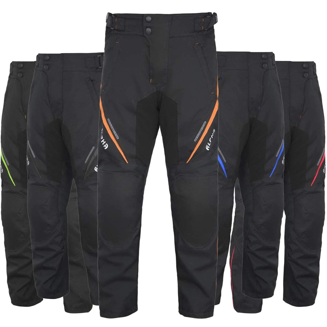 3. ALTA VISIBILIDAD EN LA OSCURIDAD | Todo el equipamiento de Alpha Cycle Gear viene con logotipos hi viz o parches para moto. Estos pantalones de montar en moto de Alpha Cycle Gear vienen con logotipos de alta visibilidad junto con ribetes hi vis para pantalones de moto.