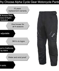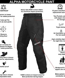 CALIDAD PREMIUM CON PROTECCIÓN A UN GRAN PRECIO ASEQUIBLE. Mide tu cintura y selecciona tu verdadera talla, elige una talla más si estás entre tallas. Puedes llevar estos pantalones de moto a prueba de viento e impermeables solos o sobre jeans de moto. HAZTE UN FAVOR Y SIEMPRE USA EQUIPO DE PROTECCIÓN DE ALTA VISIBILIDAD.