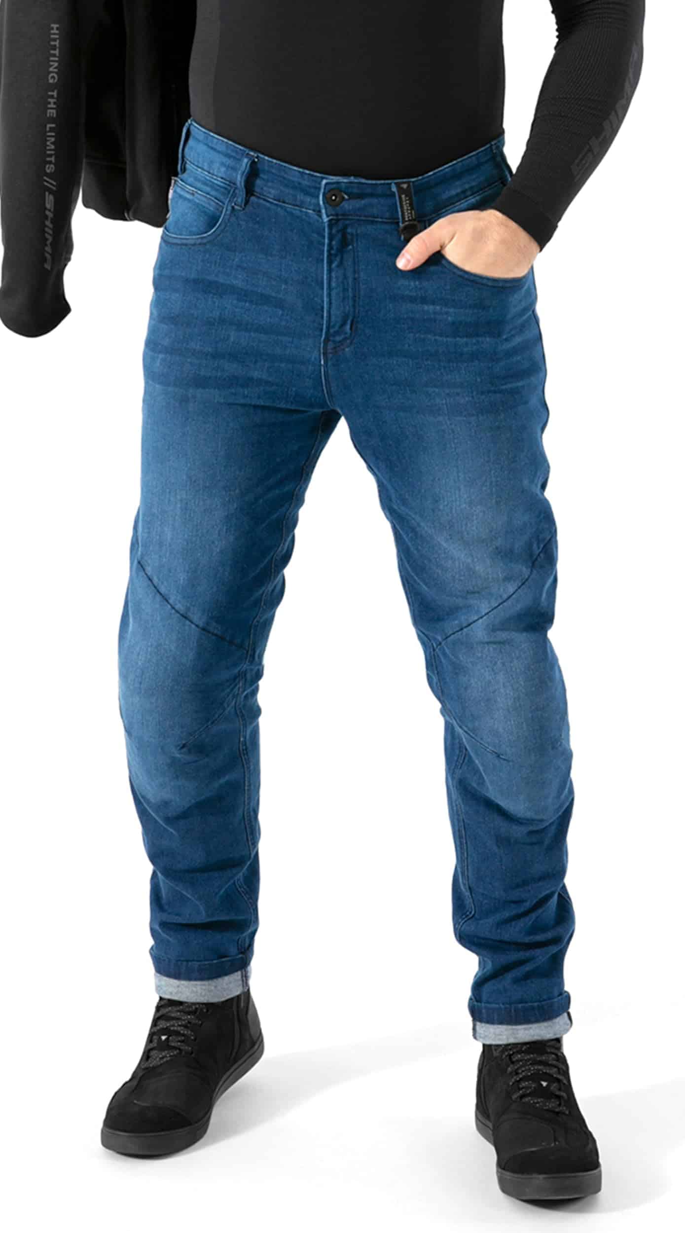 Adéntrate en el mundo del estilo sin igual en carretera con los pantalones de motocicleta SHIMA RIDER, una fusión de diseño de vanguardia y protección incomparable. Creados meticulosamente para el motociclista ávido, estos pantalones son algo más que ropa; son una declaración. Fabricados con denim premium reforzado con fibra sintética, prometen durabilidad y resistencia contra el asfalto rugoso. El corazón de la protección de SHIMA RIDER reside en sus protectores de rodilla AIRFORCE revolucionarios. Con un diseño único en panal, ofrecen un flujo de aire fenomenal, manteniéndote fresco mientras conquistas las carreteras. Estos protectores no solo garantizan la seguridad, sino que también cuentan con un nivel excepcional de comodidad, permitiéndote conducir con facilidad y confianza. Pero no se detiene ahí. Hemos reforzado los pantalones con ArmorTwill de alta densidad en áreas críticas – rodillas, caderas y asiento. Este es tu escudo contra las abrasiones, haciendo que cada viaje sea libre de preocupaciones. El estilo se encuentra con la funcionalidad en cada puntada de los SHIMA RIDER. Su diseño elegante es perfecto para el motociclista moderno que no compromete la apariencia por la seguridad. Estos pantalones pasan sin problemas de bestias rugientes en la carretera a una elegante vestimenta urbana. Los bolsillos discretos pero prácticos, equipados con cierre de cremallera, añaden a su versatilidad y practicidad. Disponibles en negro y una variedad de tallas, los pantalones SHIMA RIDER satisfacen todas las preferencias de estilo. Con bolsillos delanteros y traseros, y un accesorio para llaves con cierre en D, se integran fácilmente en tu guardarropa diario. Combínalos con tu chaqueta de motocicleta SHIMA favorita, gracias al conveniente lazo y cierre de cremallera corta, y estarás listo para dominar las calles. Los pantalones SHIMA RIDER no son solo otro par de pantalones; son una extensión de tu pasión por conducir. Ejemplifican la combinación perfecta de protección, comodidad y funcionalidad, convirtiéndolos en una parte indispensable de tu experiencia de conducción. Prepara a elevar tu conducción con SHIMA RIDER, donde cada viaje se convierte en una aventura.