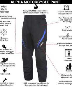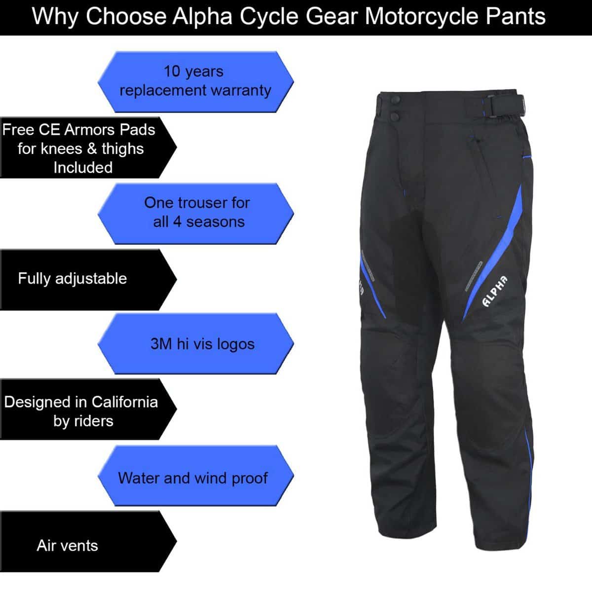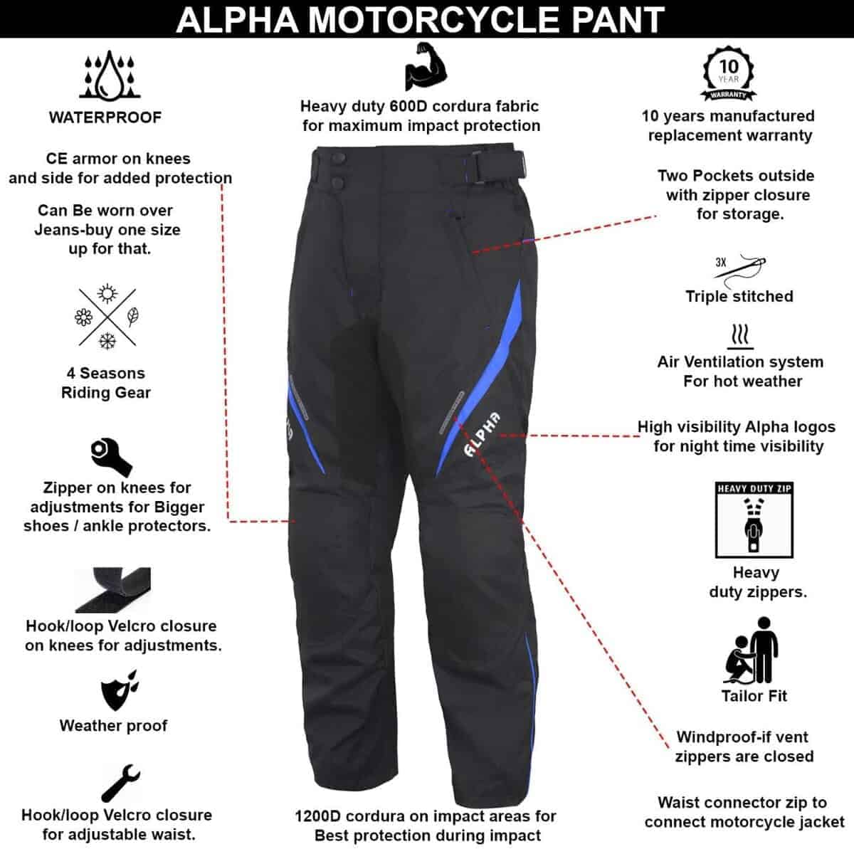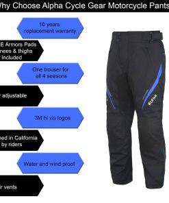 3. ALTA VISIBILIDAD EN LA OSCURIDAD | Todo el Equipo de Moto de Alpha cycle gear viene con logotipos de alta visibilidad o parches de motocicleta. Estos Pantalones de Moto de Alpha cycle gear vienen con logotipos de alta visibilidad junto con tuberías de alta visibilidad.