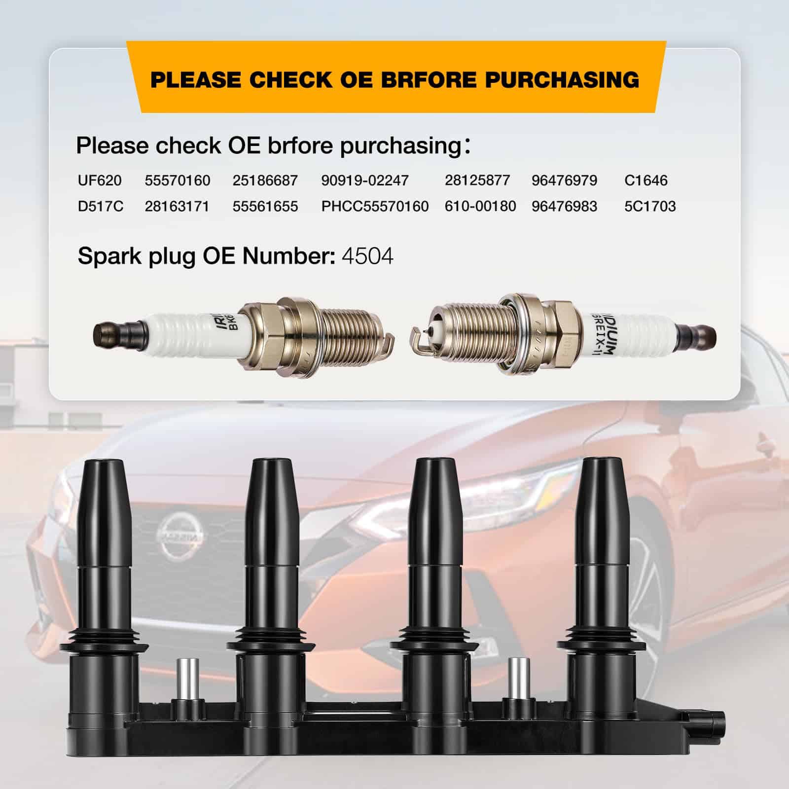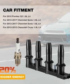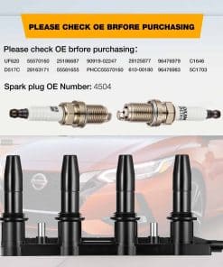 1. Información Básica: La Bobina de Encendido UF620 y la Bujía 4504 son compatibles con Chevy Cruze 2013-2015, Sonic 2013-2017, Pontiac G3 2010. Por favor, verifique la información detallada de compatibilidad en las imágenes o la página detallada. La verificación de OEM es necesaria antes de la compra. Ofrecemos garantía de 12 meses y servicio de postventa de por vida después de comprar nuestros productos. Por favor, elija el adecuado con confianza.