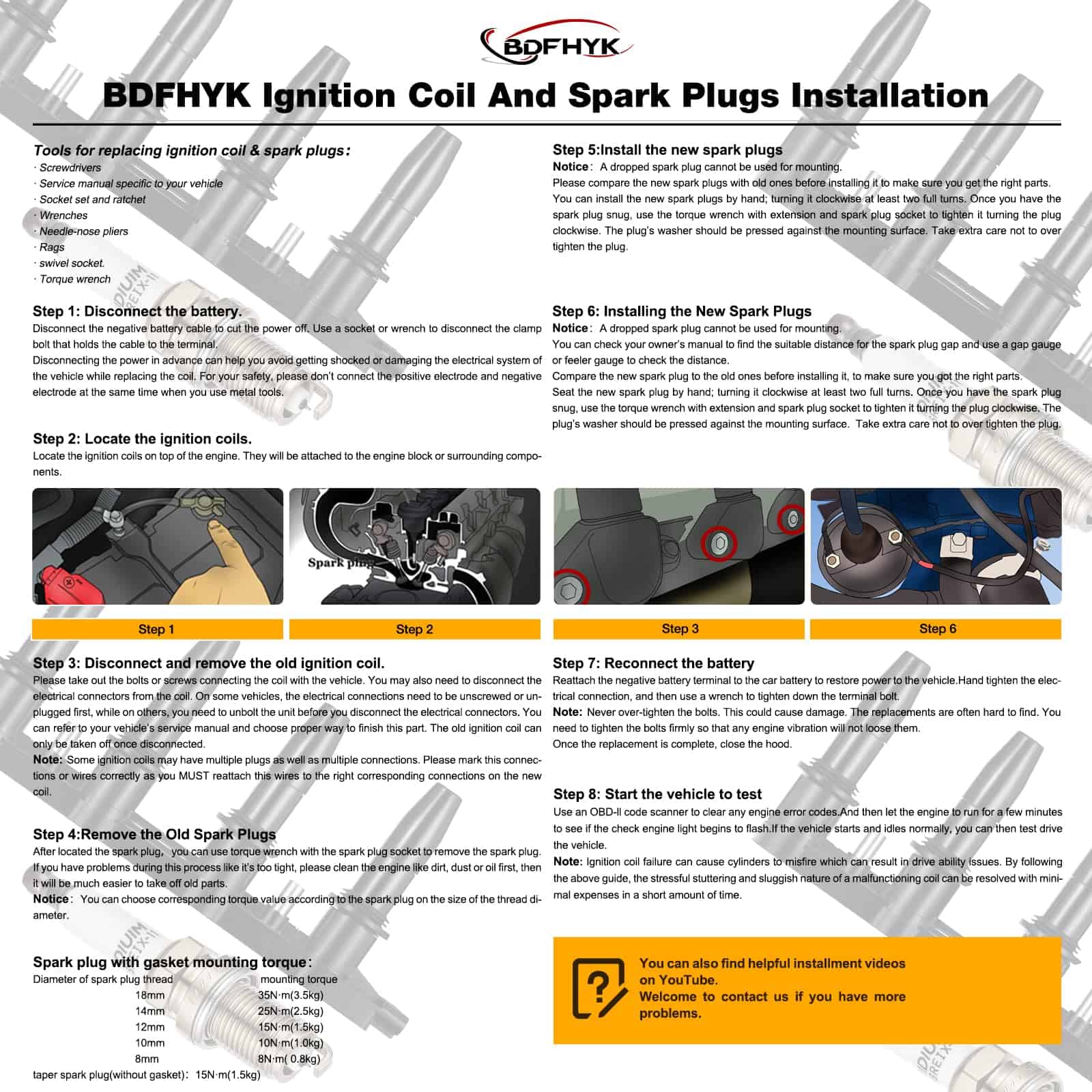 4. ¡Sí, necesitas uno nuevo! Si tu automóvil ha sido utilizado durante mucho tiempo (más de 80000 km) y tiene problemas como vibración del automóvil, falla en el arranque, aceleración lenta y aumento del consumo de combustible, es posible que necesites cambiar un nuevo juego de bujías y bobinas de encendido. La bobina de encendido y la bujía BDFHYK pueden ofrecerte una experiencia de usuario profesional y hacer que tu automóvil parezca nuevo. Puedes elegirlo con confianza.