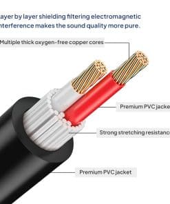 3. CABLEADO DE ENDEBLE Y PROTECCIÓN DEL CABLE: El núcleo de cableado de cobre trenzado mejora la calidad del audio y disminuye el riesgo de interferencias de señal. El exterior de PVC de alta resistencia ofrece protección adicional para el núcleo del cable interior para evitar daños ambientales para el cable de audio.