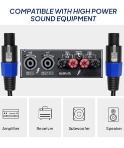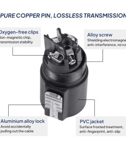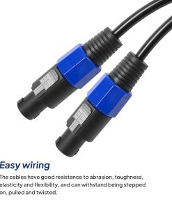 1. CONFIGURACIONES DE AUDIO DE ALTA POTENCIA PROFESIONAL: Los cables Speakon constan de dos adaptadores de audio en ambos extremos. Por lo general, se utilizan para conectar amplificadores y altavoces, especialmente para aplicaciones de transmisión de señal fiable y de alta potencia, como sistemas de PA, mesas de mezclas de sonido, altavoces.