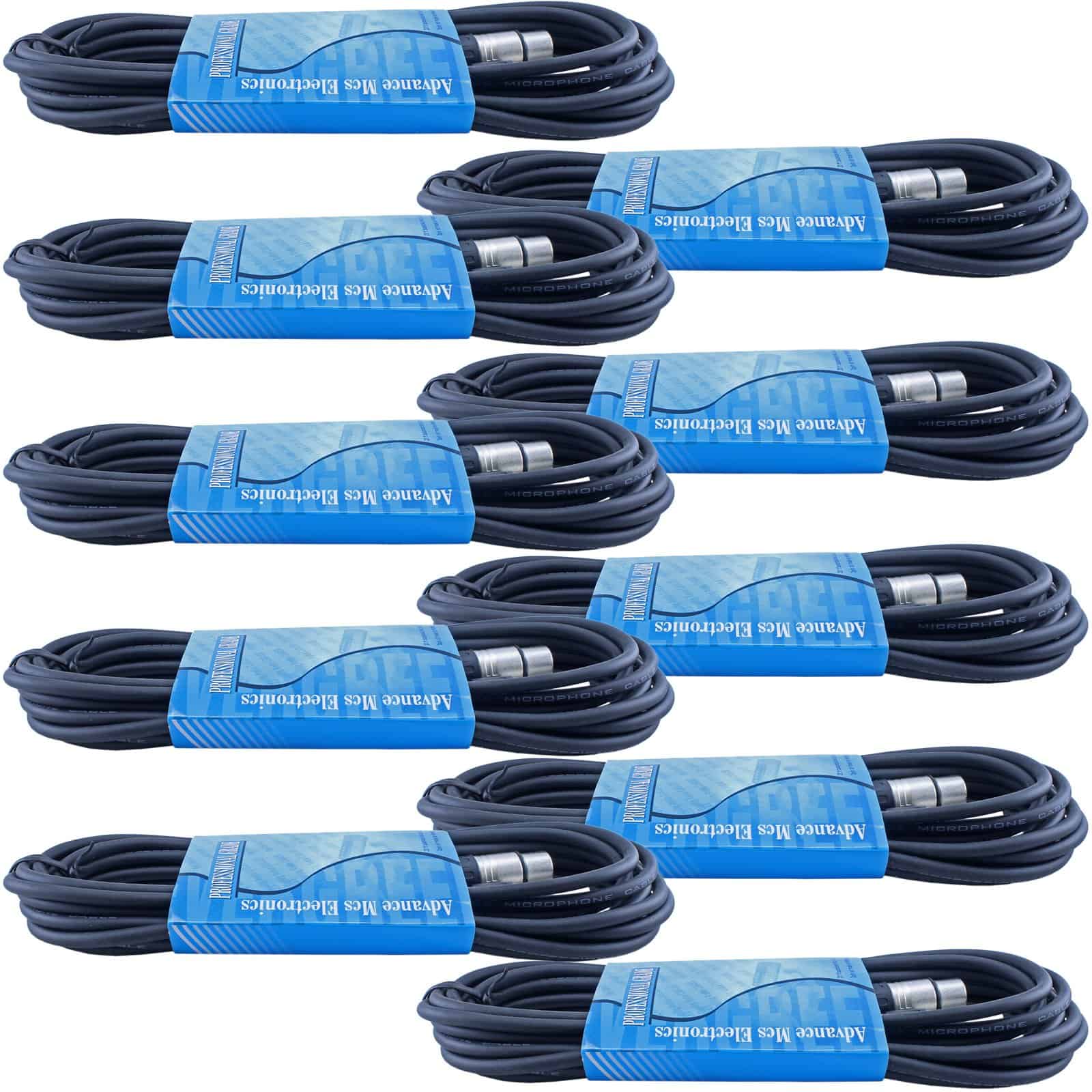 Paquete de 10 cables de micrófono XLR de 15 pies de