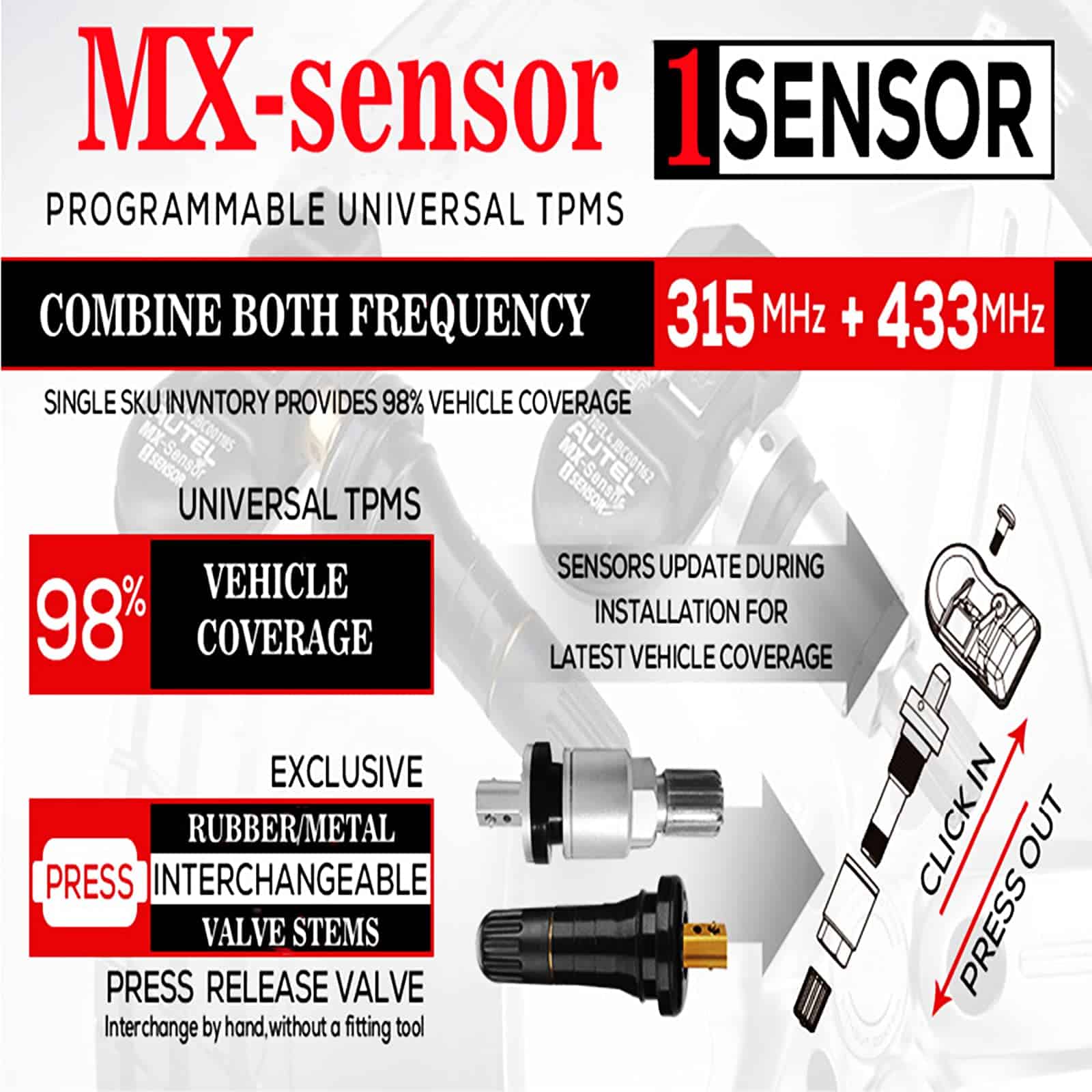 Un sensor TPMS fácil de usar y económico es una necesidad para cualquier taller que realice reparaciones de TPMS, la solución de inventario de sensores Autel 1-SKU con 99% de cobertura vehicular elimina la necesidad de que los distribuidores lleven cientos de sensores para cumplir con los pedidos del taller. A nivel de taller, solo necesitar 1-Sensor para atender casi todos los vehículos equipados con TPMS significa un menor costo de reparación y una mayor eficiencia de instalación. La extraordinaria potencia de señal del sensor permite que el AUTEL 1-Sensor se programe fácilmente de forma inalámbrica incluso cuando los sensores ya han sido montados en la rueda. Y con una fuerte potencia de señal, ahora se pueden programar hasta 16 sensores en una sesión con las últimas herramientas TPMS de AUTEL. El AUTEL MX-Sensor es 100% clonable. No se necesita re-aprendizaje cuando el MX-Sensor se clona con el ID del sensor original y se coloca en la misma posición. Con los materiales de la más alta calidad y la tecnología avanzada de TPMS, el AUTEL 1-Sensor brinda una vida útil y confiabilidad de batería superiores, para igualar el rendimiento de la batería del sensor OE. El cuerpo del 1-Sensor pesa solo 11g, lo que lo hace significativamente más ligero que la mayoría de sensores en el mercado, lo que garantiza una mejor estabilidad y rendimiento del sensor. AUTEL garantiza que el sensor de alta calidad MX-Sensor está libre de defectos de fabricación durante un período de 24 meses o 24,000 millas, lo que ocurra primero. Cada Autel MX-Sensor tiene un número de serie para garantizar el control de calidad. El número de serie está impreso en el sensor o se puede leer con las herramientas TPMS de Autel. Con el número de serie, Autel puede rastrear la calidad del sensor desde la fabricación en nuestra fábrica para garantizar que solo se instalen las piezas de mayor calidad.