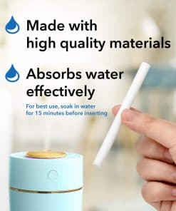 ¡Y son tan fáciles de usar! Simplemente remoja un palito de humidificador personal en agua e insértalo en tu humidificador para horas de comodidad.
