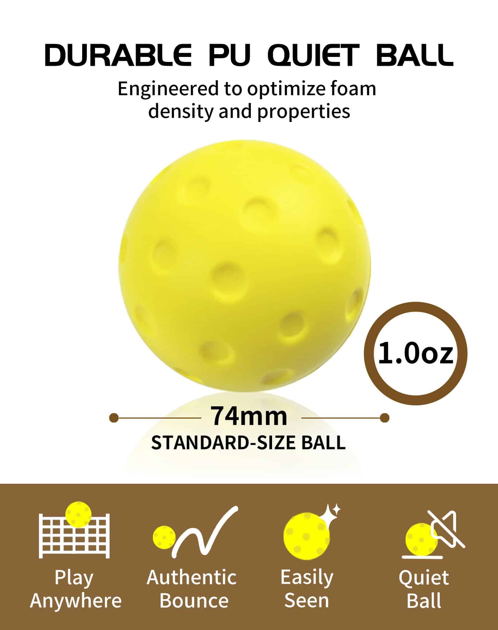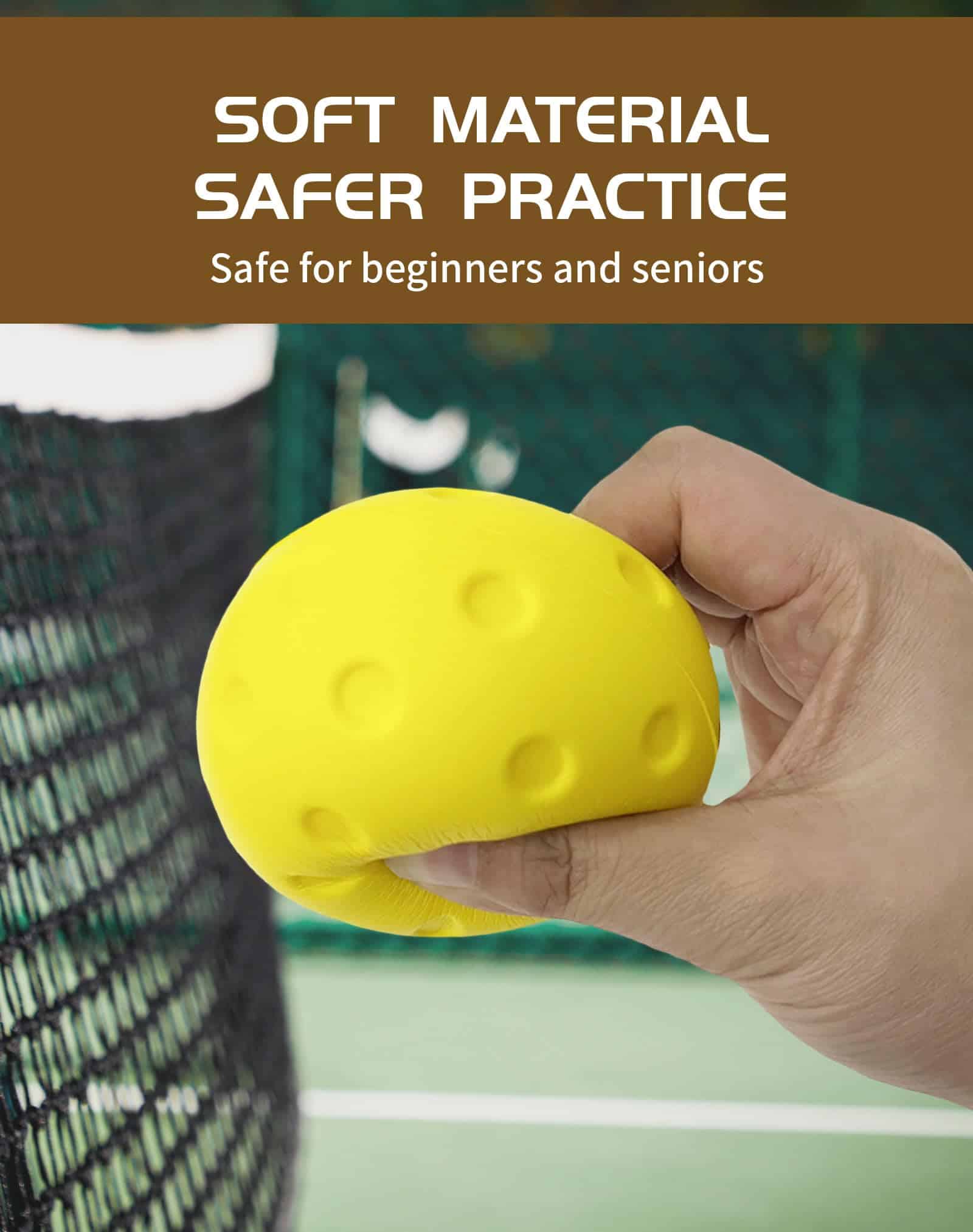 Nuestras Bolas de Pickleball de Espuma ofrecen una experiencia de juego silenciosa con tecnología de reducción de ruido, perfectas para entornos sensibles al ruido como canchas interiores y áreas residenciales. Con un nivel de ruido de 60db, proporcionan un entorno de juego pacífico como una conversación regular, en comparación con el volumen de 90db de las pickleballs tradicionales. Fabricadas con espuma duradera de rebote rápido, nuestras bolas de práctica resisten miles de golpes sin perder la forma. Estas bolas de pickleball silenciosas cumplen con las normas de rebote de USAPA, proporcionando un entrenamiento preciso con ruido reducido. Diseñadas para imitar el tamaño, peso y rebote de una bola tradicional, ofrecen una experiencia de juego confiable para jugadores de todos los niveles de habilidad. Diseño amarillo brillante, alta visibilidad para una fácil observación de la verdadera rotación de la bola, seguimiento fácil durante la práctica y partidos. Mejora las habilidades visuales de los principiantes y mejora el juicio. Esta bola se puede utilizar no solo para la práctica de pickleball, sino también para el entrenamiento de tenis, béisbol, sóftbol y otros deportes de pelota. Estas bolas de pickleball de espuma son seguras para jugadores de todas las edades, el material suave reduce el riesgo de lesiones, permitiendo a los principiantes practicar sin preocuparse por ser golpeados, lo que facilita el aprendizaje del juego. Ya sea para practicar al aire libre o en interiores, juegos de vecindario o jugar a buscar con mascotas, ofrecen diversión sin parar. Si no estás satisfecho con las Bolas de Práctica de Pickleball o tienes alguna pregunta, contáctanos en cualquier momento, te proporcionaremos la mejor solución. Servicio en línea las 24 horas.