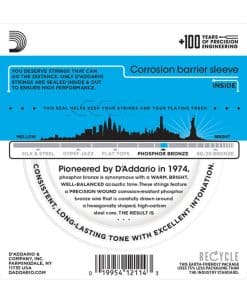 El paquete incluye 12 cuerdas de guitarra acústica D’Addario EJ16 de bronce fosforado, calibre light 12-53. Estas cuerdas ofrecen un tono brillante y un excelente equilibrio. Ideales para guitarristas que prefieren un sonido nítido y claro en sus interpretaciones. Las cuerdas de bronce fosforado son duraderas y resistentes a la corrosión, lo que garantiza una larga vida útil y una excelente calidad de sonido. Renueva el sonido de tu guitarra con este paquete de cuerdas de alta calidad.