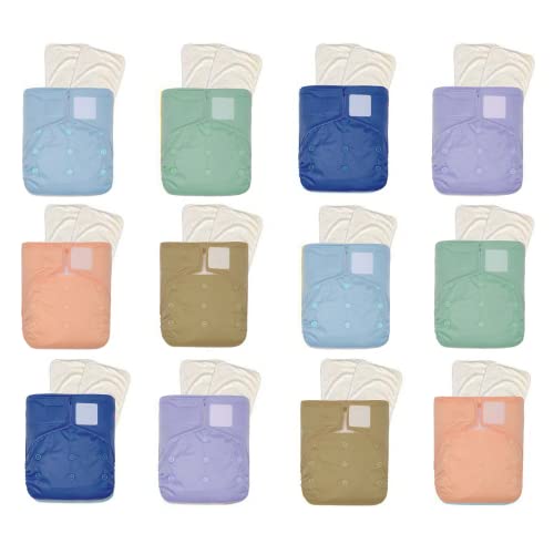 Este paquete viene con 12 pañales y 24 insertos de bambú, suficiente para un suministro de 1-2 días. Todo lo que necesitas para el uso de pañales de tela. Bueno para familias con varios niños en pañales o puedes guardar el pañal para tu próximo hijo. Talla única para bebés que pesan de 8 a 36 libras. Nuestro cierre grande de gancho y lazo hace que cambiar sea sencillo para las guarderías ocupadas o las niñeras primerizas.