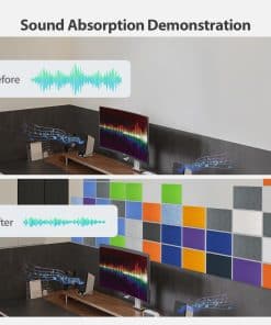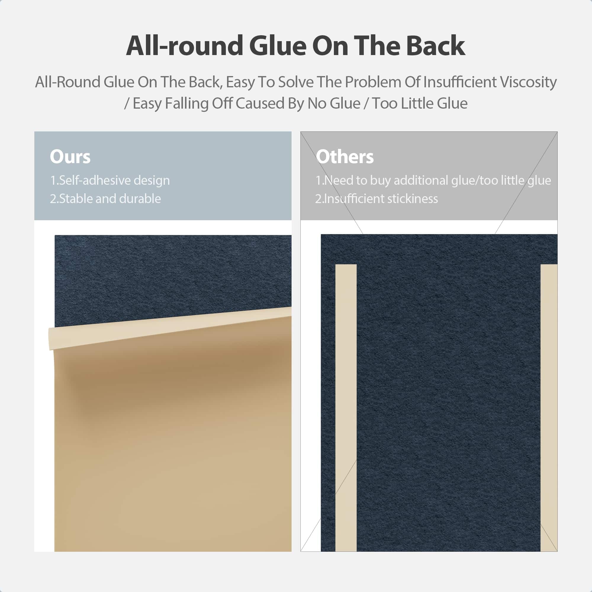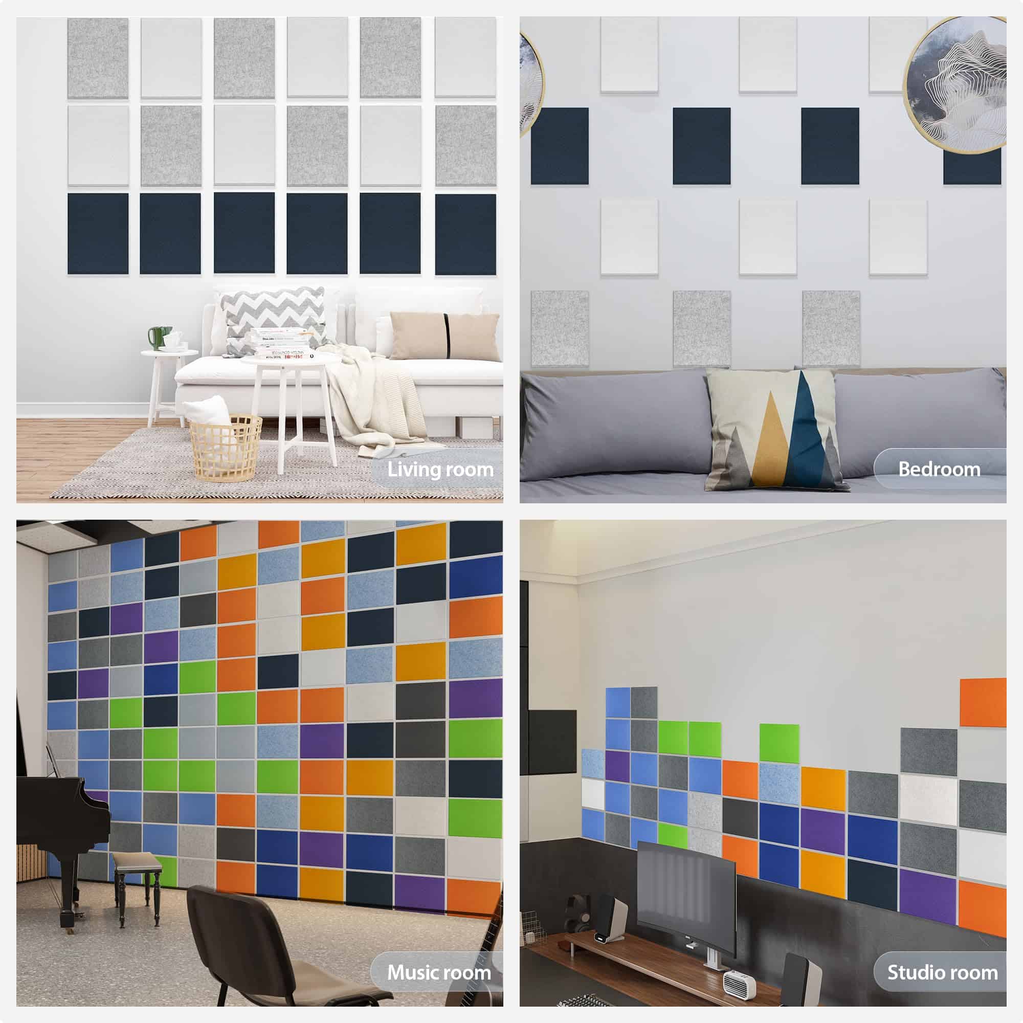 4. FÁCIL DE INSTALAR Y CORTAR Y AMPLIAMENTE APLICADO El panel absorbente de sonido tiene pegamento en la parte trasera, por favor, retira directamente la capa protectora al usarlo, es adecuado para todo tipo de paredes y se puede pegar fácilmente, puedes utilizar un cuchillo para cortar la forma que desees, es ideal para estudios profesionales, salas de ensayo, auditorios, podcasts, iglesias, teatros en casa, salas de voces, estudios en casa, oficinas, perreras, armarios y más.