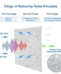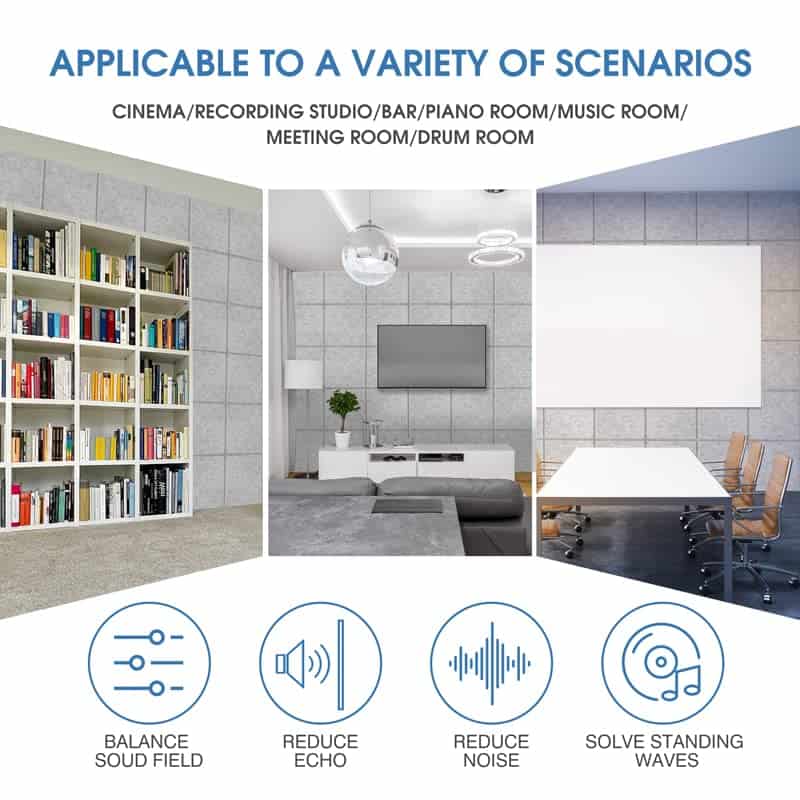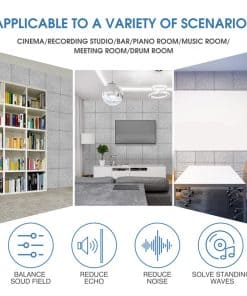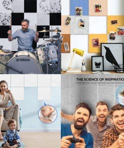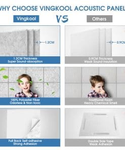 Por qué Necesita Paneles de Pared Acústicos Vingkool A medida que la vida de las personas se ha diversificado, nuestros lugares de trabajo y entornos de vida se han vuelto más ruidosos, lo que reduce los niveles de atención y dificulta que las personas se concentren en su trabajo o vida. Los paneles acústicos Vingkool absorben eficazmente el ruido, reducen los ecos y proporcionan un ambiente cómodo y relajante para usted. Especificaciones: Dimensiones:12″x12″x0.5″ Peso: 3.76 libras Color: Negro, Blanco, Gris, Azul Cielo Material: Fibra de Poliéster 100% Paquete Incluye: 12 Paneles Características: Grosor Mejorado de 1.2CM: Los paneles de pared insonorizantes más gruesos mejoran la calidad del sonido de manera más efectiva, especialmente para reducir ruidos altos y disminuir ecos. Diseño Autoadhesivo: Nuestros paneles acústicos vienen con autoadhesivo, todo lo que necesita hacer es pelar el adhesivo y colocar los paneles en la pared. No se necesitan pegamento ni pegatinas. Materiales Seguros: Hechos de fibra de poliéster 100%, aplican materiales ignífugos y no tóxicos, no tienen ningún olor y no dañan nuestra salud. Diseño de Borde Biselado de 45: Tanto decorativo como funcional, le permite disfrutar de un entorno más silencioso mientras decora las paredes. Buen Efecto Insonorizante: El coeficiente de reducción de ruido de los paneles de pared acústicos Vingkool es NRC 0.95, y el coeficiente de absorción promedio del sonido (100HZ~5000HZ) es 0.85. Amplia Aplicación: Los paneles de insonorización de Vingkool tienen una amplia gama de aplicaciones en interiores, se pueden utilizar para estudios profesionales, salas de ensayo, salas de conciertos, podcasting, iglesias, salas de cine en casa, cabinas vocales, estudios caseros, oficinas, grabación de YouTube/podcast, armarios de servicios públicos y más. Al usar paneles acústicos de alta densidad para amortiguar el sonido no deseado, puede mejorar la calidad del sonido de manera más efectiva.