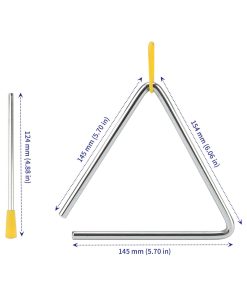 1. Estos instrumentos de percusión de triángulo están hechos de una aleación resistente que es dura, fuerte y duradera y no se romperá o deformará fácilmente. 2. El instrumento de triángulo tiene una superficie suave y libre de rebabas que no te raspa las manos. Tienen un acabado brillante y son muy estéticamente agradables. 3. Nuestros triángulos de percusión de mano tienen un lado de 6 pulgadas, cada uno de los cuales está equipado con un martillo de metal, y el sonido de golpeo es nítido y fuerte. 4. Los instrumentos musicales de triángulo son perfectos para amantes de la música para tocar o practicar, ideales para ensambles de percusión, clubes de música y actuaciones en fiestas.