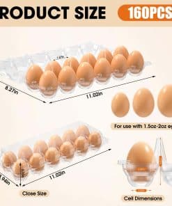 Clear egg cartons are made from durable and recycled PET plastic, which provides reliable feature of sturdy, safe, lightweight and cost-effective; The sturdiness and Thickness material crafting to ensure they remain intact during transport and storage. Perfect for storing and securing up to a dozen eggs. These egg cartons dimension is 11.3 x 3.9 x 2.8inch and can securely hold 12 chicken eggs of medium size or smaller to keep your eggs safe in this secure container. The PET plastic crafting is sturdy enough to hold up to your multiple uses. The clear egg cartons with snap buckle design allow daily use of opening and closing while still keeping in perfect condition. Transparent design allows the condition of the eggs to be seen. Versatile plastic egg cartons are valuable for storing and packaging fresh eggs for farm egg storage, market egg sales, and transportation. They can also organize small items and safely store delicate objects. Their compartments make them ideal for organizing small hardware and storing fragile holiday ornaments and other decorations.