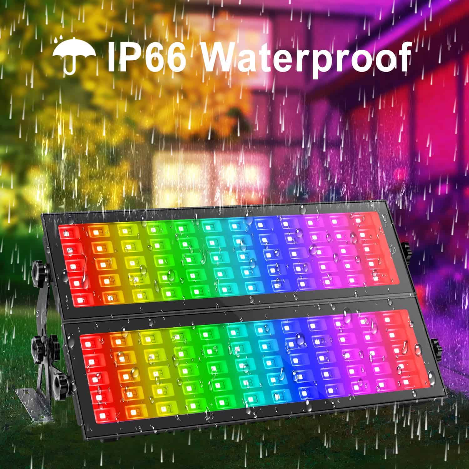 3. Impermeable IP66 La luz de lavado LED tiene una clasificación IP66 a prueba de agua, funciona en mal tiempo, como lluvia, nieve, aguanieve y nieve, cuando hay diferencia de temperatura, la barra de luz que cambia de color no mostrará gotas de agua, es adecuada para uso en interiores y exteriores. Puede ser la elección perfecta para la iglesia, Navidad, festivales, jardín, Halloween, fiestas, bodas, etc.