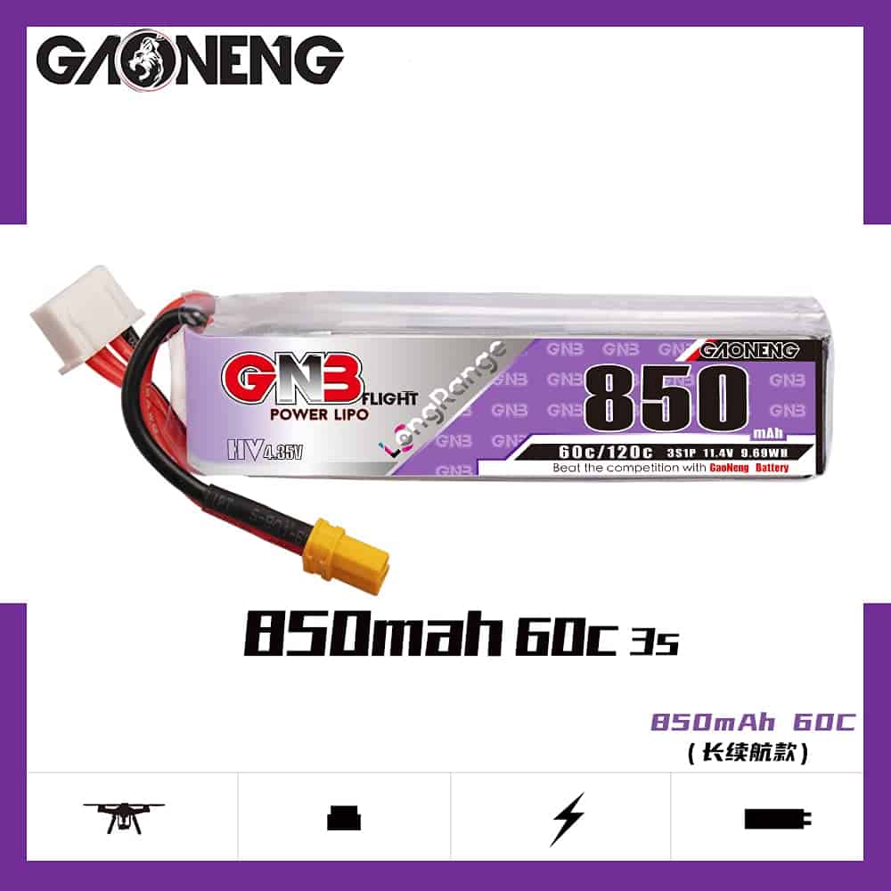 Paquete de 2 baterías de LiPo GAONENG 850mAh 3S 11.4V HV