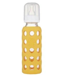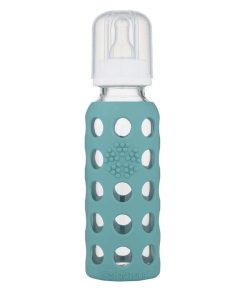 A medida que el bebé crece, el biberón de vidrio Lifefactory de 9 oz es el siguiente paso. Con una variedad de tamaños de tetina y tapas para sorber, nuestro biberón se adapta a las necesidades cambiantes de tu bebé. El biberón de 9 oz viene con una manga de silicona, tapa de polipropileno, anillo, tapón y una tetina de silicona de etapa 2 (3-6 meses). A medida que tu pequeño continúa creciendo, se incluyen las tetinas de silicona de etapa 3 (6+ meses). Apreciarás la superficie de agarre de la manga de silicona colorida, y te encantará el hecho de que estás utilizando un biberón de vidrio fabricado con materiales de alta calidad.
