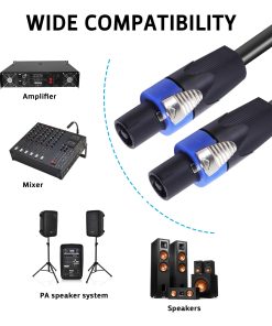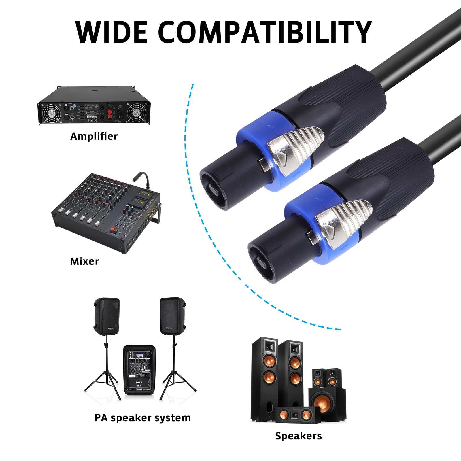 4. DURADERO PARA USO A LARGO PLAZO: El PVC negro es flexible y menos visible en el escenario. El caucho resistente al desgaste ofrece protección adicional para el núcleo interno para evitar daños ambientales, asegurando que el cable speakon mantenga su rendimiento superior sin pérdidas ni distorsiones.