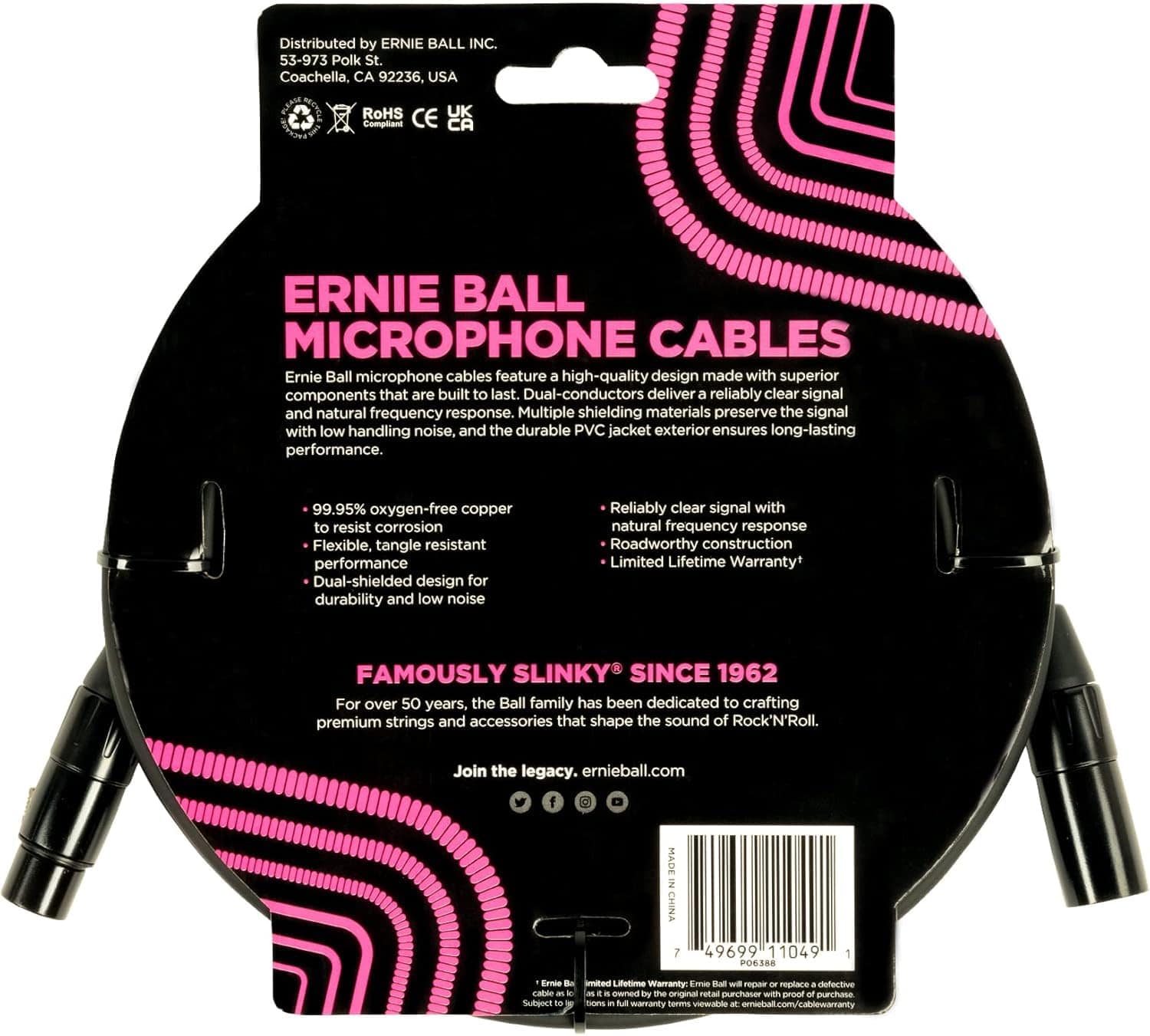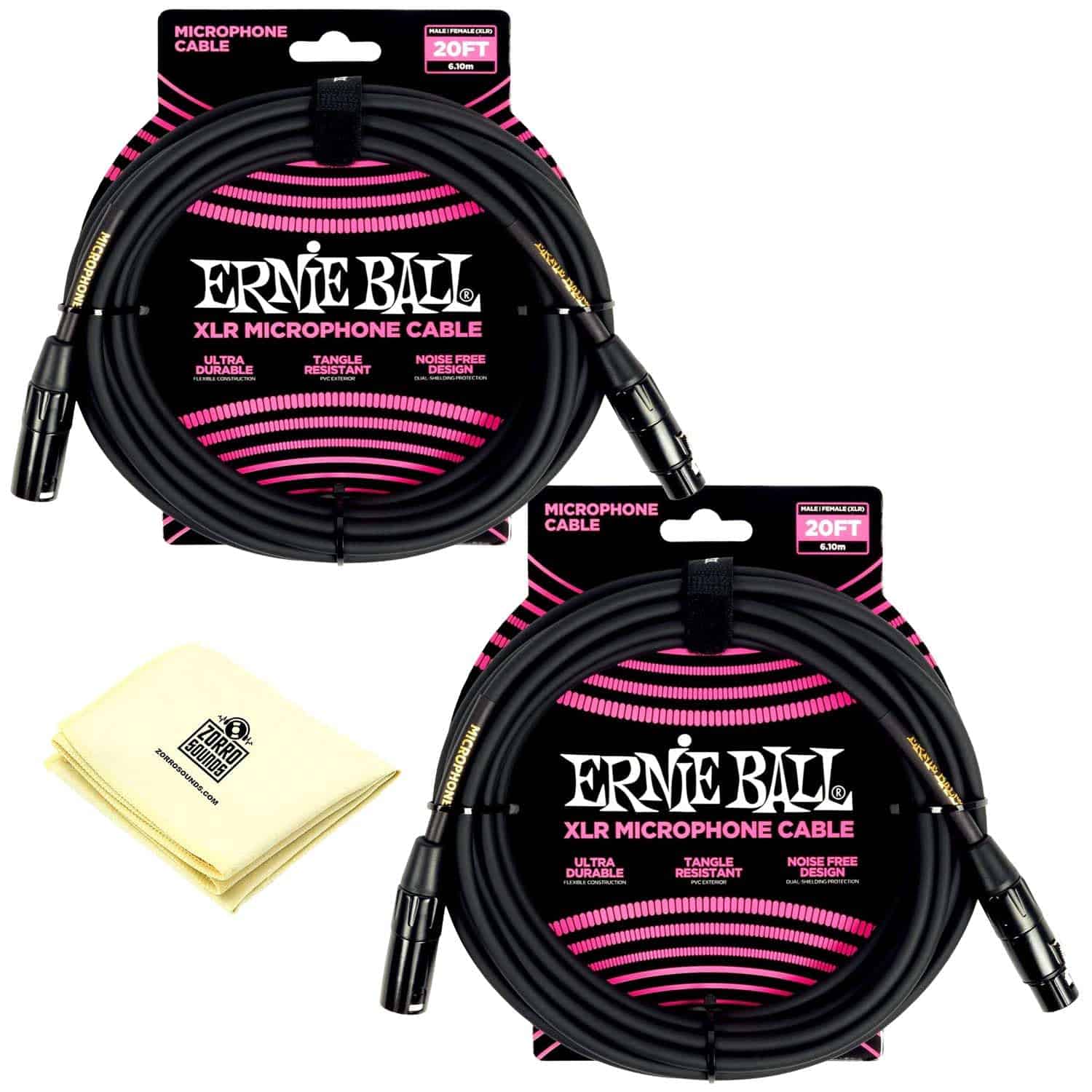 Paquete de 2 Cables de Micrófono XLR Ernie Ball con Paño de