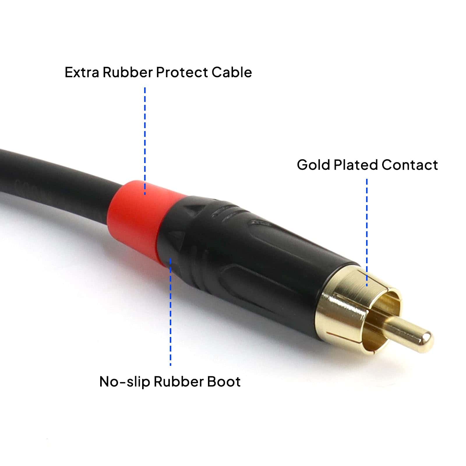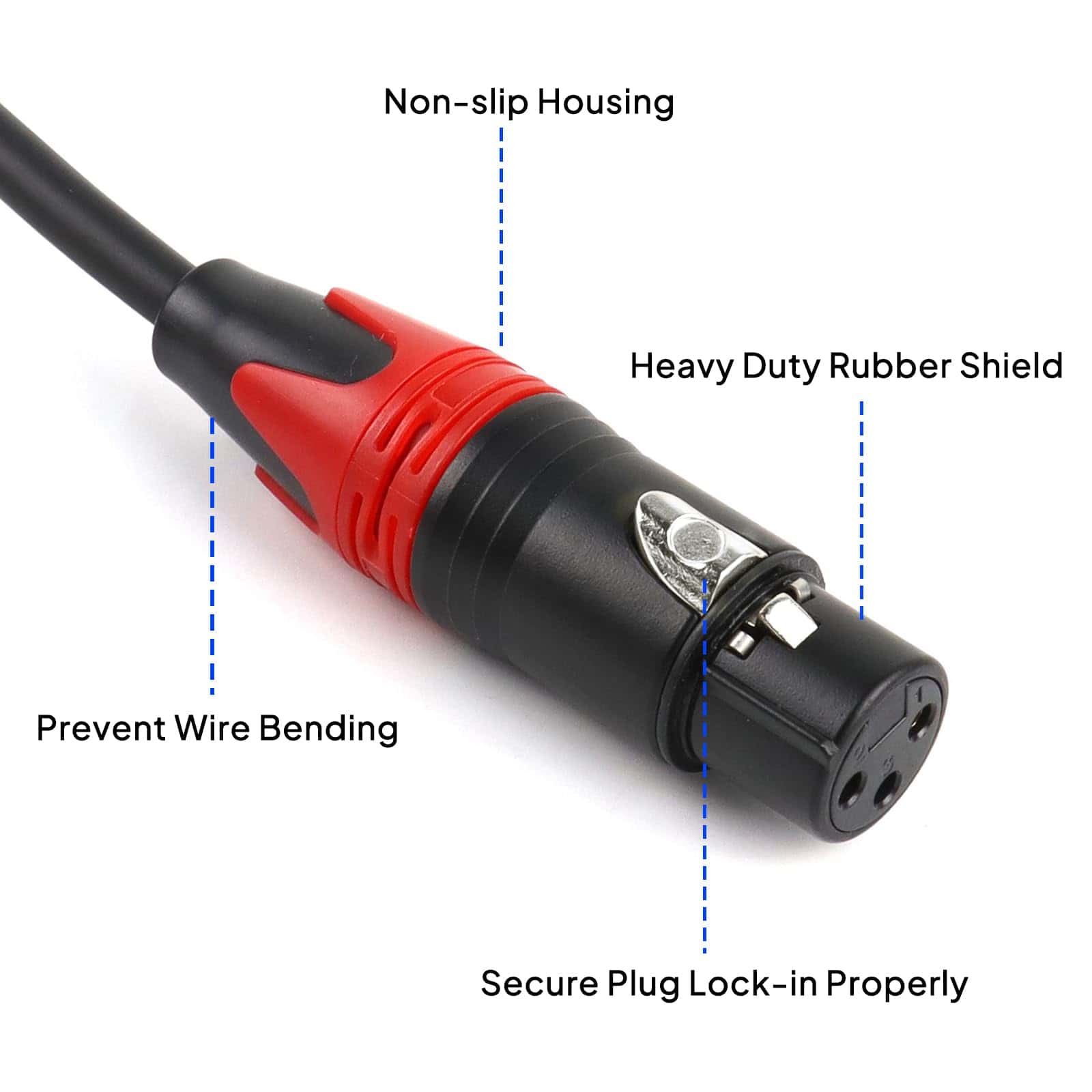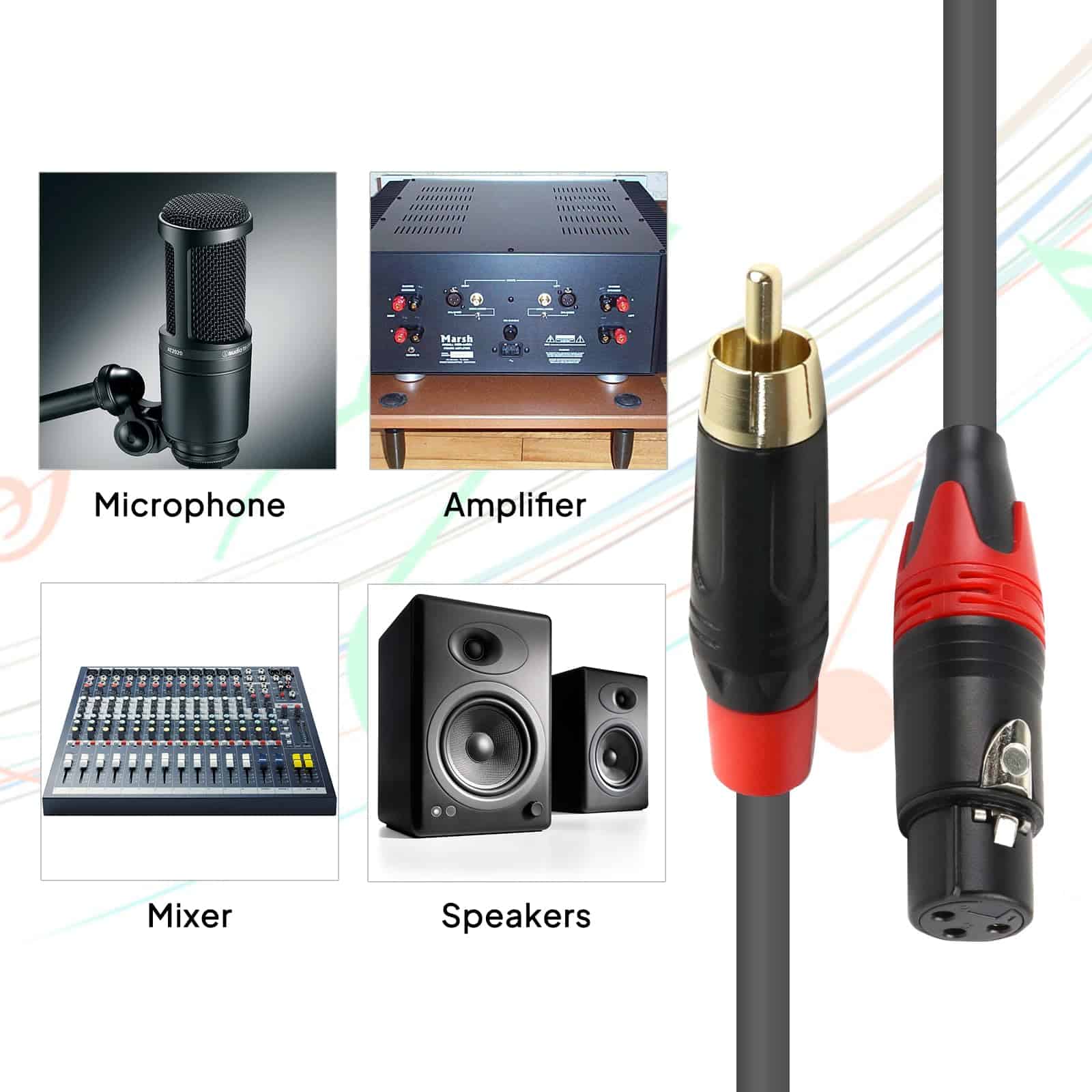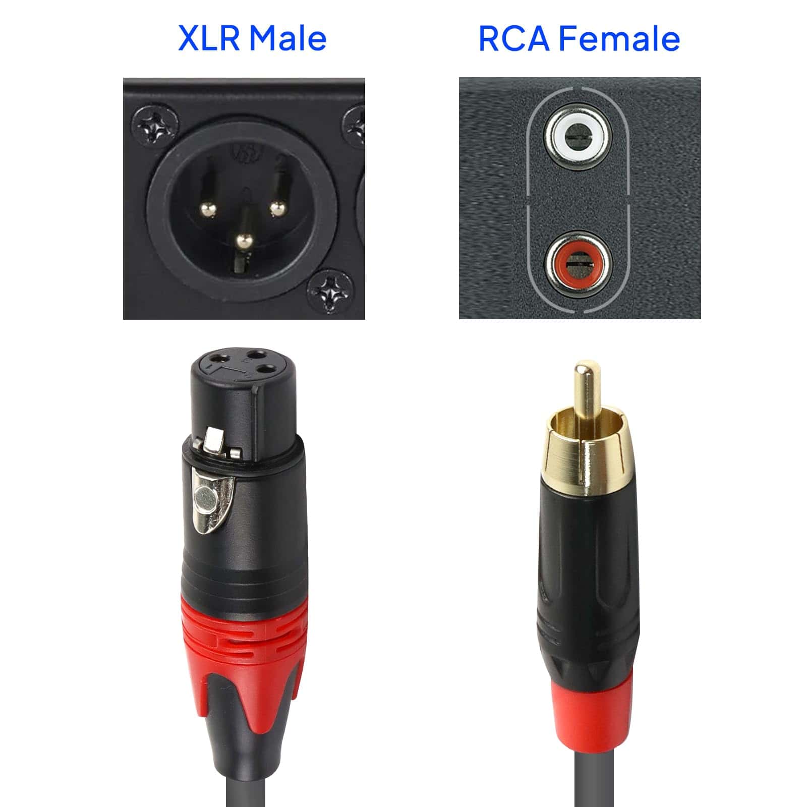 El cable XLR a RCA convierte la señal de audio balanceada en una desbalanceada. Es ideal para enviar señales de audio desde una fuente XLR a una entrada RCA que resulte en una señal desbalanceada. El adaptador XLR hembra de 3 pines tiene un diseño de bloqueo para asegurar el enchufe en el equipo relevante. La interfaz RCA está chapada en oro para resistencia a la corrosión y estabilizar la transferencia de señal. El material de goma suave proporciona protección adicional y flexibilidad para los cables internos. Además, ambos conectores están cubiertos con un revestimiento de goma dura. El núcleo de cobre libre de oxígeno con blindaje proporciona una salida de sonido de calidad HiFi. Los cables XLR a RCA se utilizan típicamente para señales analógicas, principalmente de audio. Es perfecto para conexiones de audio de mezclador de micrófono, amplificador de auriculares, consola de mezclas, grabadora de cinta, TV, reproductor de CD, DVD con altavoces, multimedia, etc.