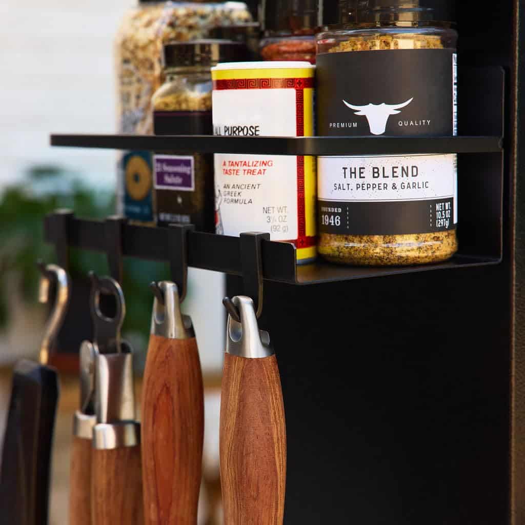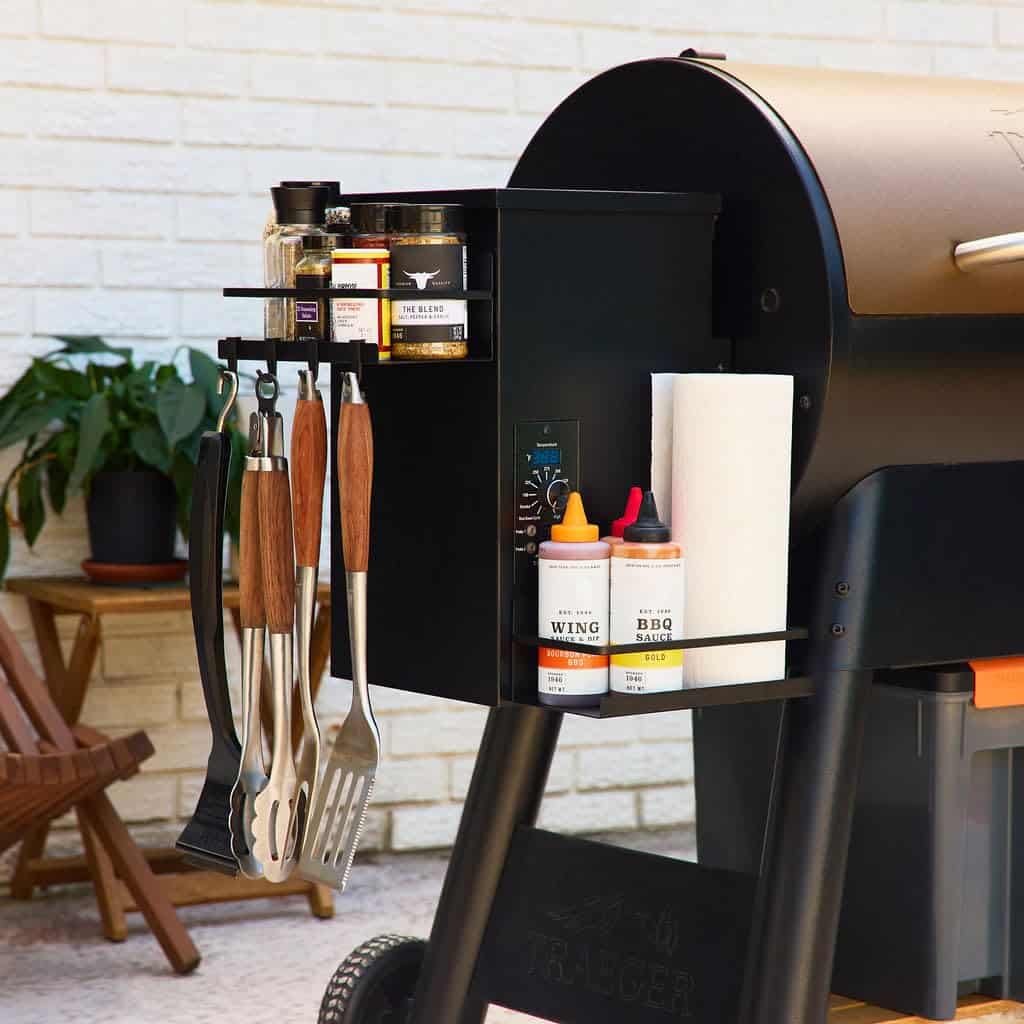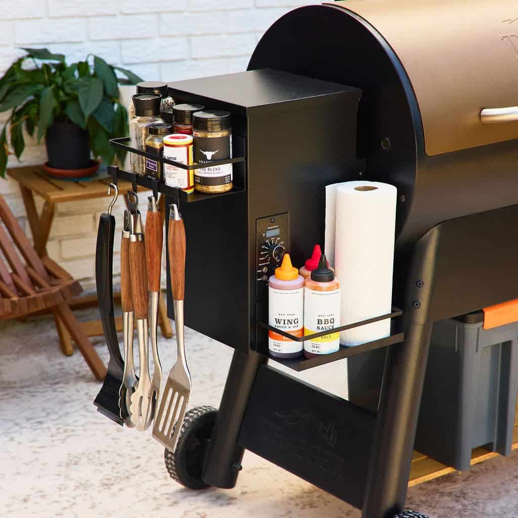 3. Solución de almacenamiento versátil: Perfecto para tener tus condimentos, herramientas de parrilla y accesorios para ahumadores al alcance, mejorando tu experiencia de parrilla con eficiencia organizada.