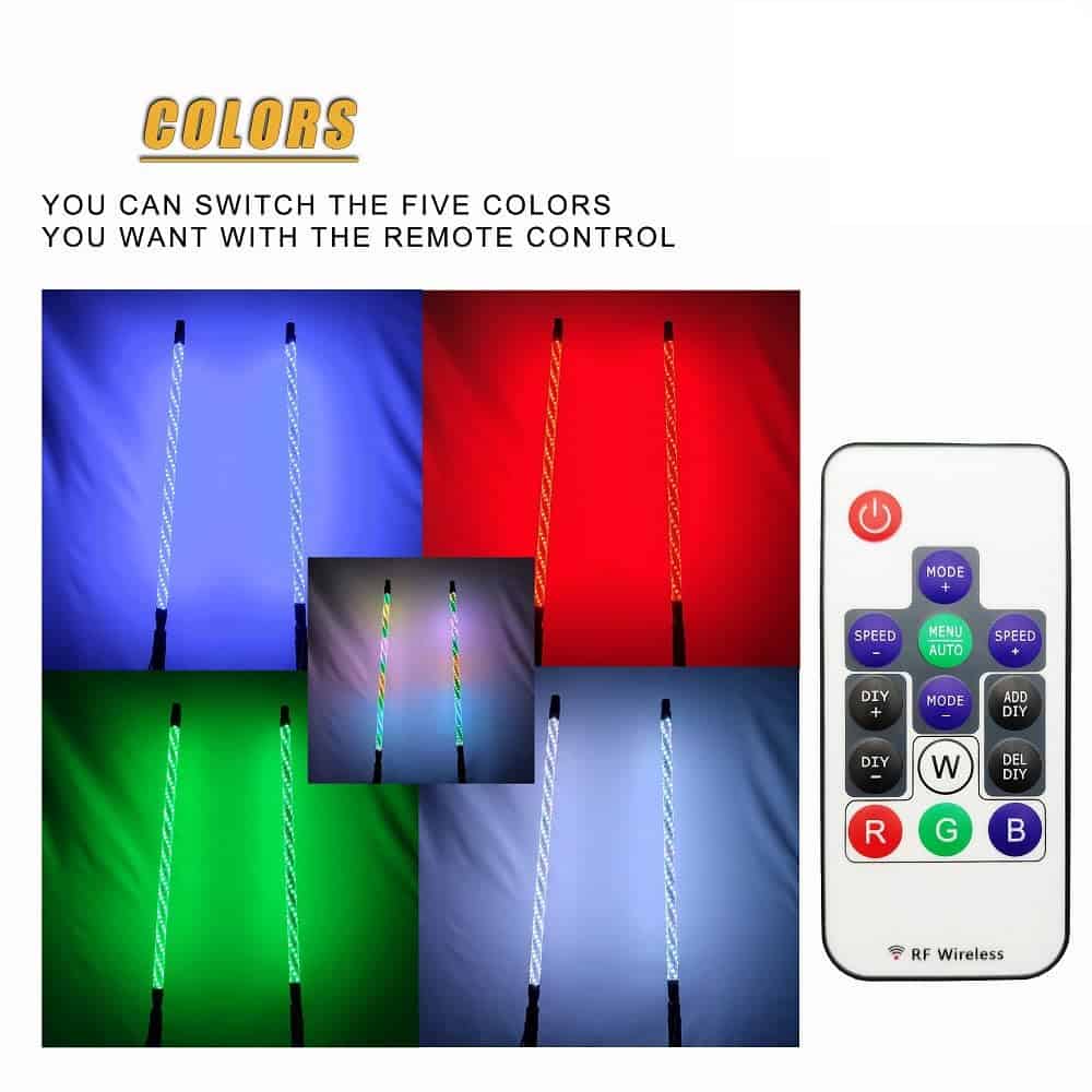 Paquete de 2 luces de látigo LED de 4 pies con control