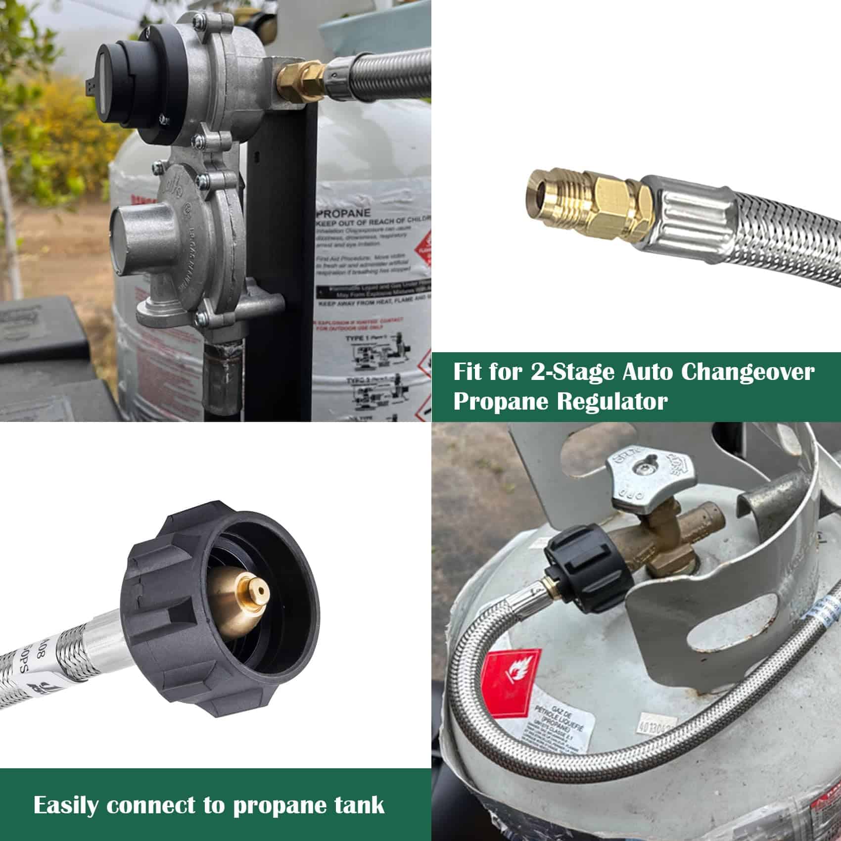 Esta manguera de propano de RV con cola de cerdo trenzada de fibra de 20 pulgadas es una opción perfecta para tus necesidades de barbacoa, RV, cocina al aire libre y camping. Con un conector macho de 1/4 de pulgada con Flare Invertido, esta manguera puede conectarse fácilmente a tanques de gas LP de 5-40 lb y reguladores estándar de 1/4″ invertidos de 2 etapas en campistas. La manguera de propano utiliza materiales de alta calidad como accesorios de latón macizo 100% y material trenzado de acero inoxidable para garantizar resistencia a la intemperie, resistencia al fuego y durabilidad. Además, el adaptador de tanque QCC1/Type1 está diseñado con una rueda de mano para una fácil instalación sin necesidad de herramientas. Con certificación CSA, esta manguera de propano garantiza estanqueidad y estabilidad, proporcionando una conexión segura y libre de fugas. Con el compromiso de CHILIPILI de brindar productos de alta calidad y el mejor servicio, puede estar seguro de su compra.