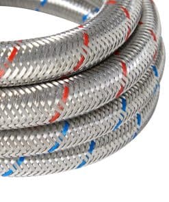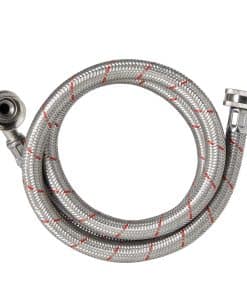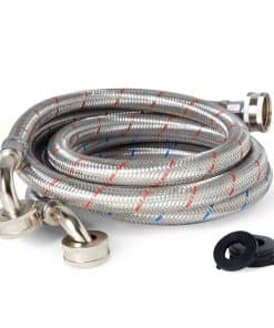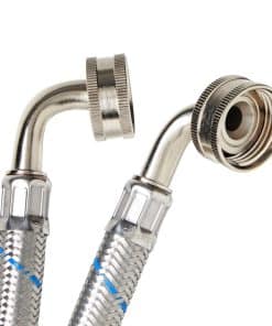 Utilice este juego de 2 mangueras universales de suministro de lavadora para mejorar instantáneamente su lavandería o para una nueva instalación de lavadora. Cada manguera de lavadora viene con una raya de color rojo o azul para indicar la temperatura del agua caliente o fría. Las mangueras cuentan con una conexión de codo de 90 grados y miden 4 pies de longitud, lo que significa que tendrá suficiente espacio donde decida colocar su lavadora. Cada manguera está hecha de PVC duradero y acero inoxidable con una cubierta protectora trenzada exterior para ayudar a prevenir el óxido y las explosiones.