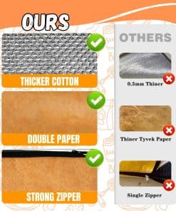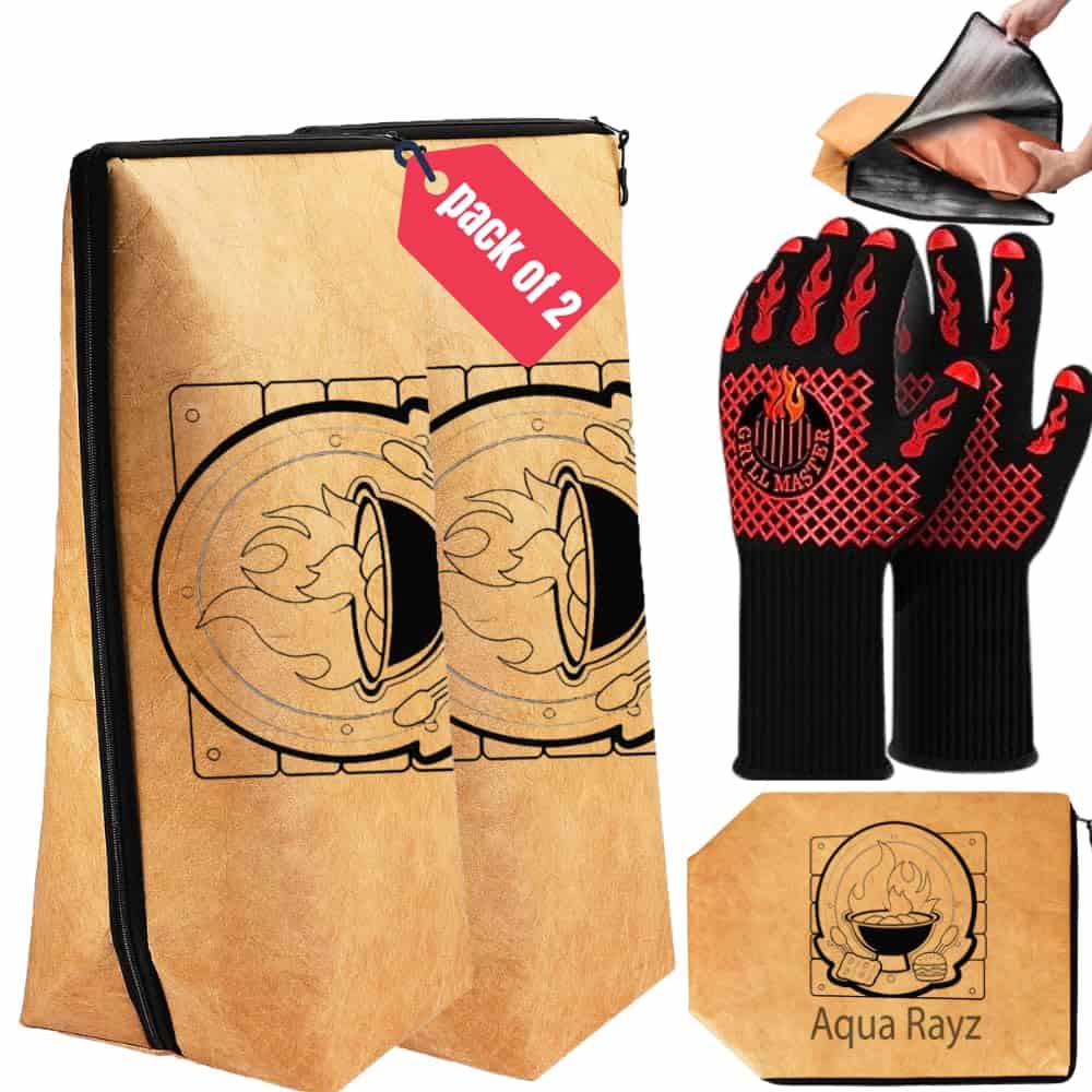 Paquete de 2 – ¿Quieres disfrutar de carne jugosa y tierna en tu próxima barbacoa? La manta para reposar carne junto con guantes resistentes al calor es la solución perfecta. Con un diseño espacioso que se ajusta a diferentes tamaños de carne y alimentos para barbacoa, esta manta de gran capacidad te permite organizar tu comida de manera eficiente para eventos familiares, reuniones con amigos o picnics al aire libre. La manta de barbacoa es compacta y portátil, lo que la hace ideal para llevar a cualquier lugar. Hecha de materiales ligeros, se puede transportar fácilmente en mochilas o maletas, permitiéndote disfrutar de la barbacoa en cualquier momento y lugar, ya sea conduciendo, de excursionismo o acampando. La bolsa de reposo de carne cuenta con un diseño fácil de usar, con cierre de cremallera duradero y pliegue plano para un almacenamiento práctico. Tanto si eres un principiante en la barbacoa como un experimentado maestro del asador, la manta de reposo de carne garantiza una experiencia sencilla y sin complicaciones. Fabricada con material resistente al agua y aceite, la manta para barbacoa es fácil de limpiar. Simplemente limpia con un paño húmedo para eliminar manchas y mantenerla en perfecto estado. Además, la bolsa para reposar carne utiliza aislamiento de varias capas para retener el calor y evitar pérdidas, manteniendo la comida a la temperatura perfecta para conservar el sabor y hacer que tu comida sea aún más deliciosa. Asegúrate de disfrutar de la carne perfectamente cocida con la manta para reposar carne y los guantes resistentes al calor en tu próxima barbacoa.
