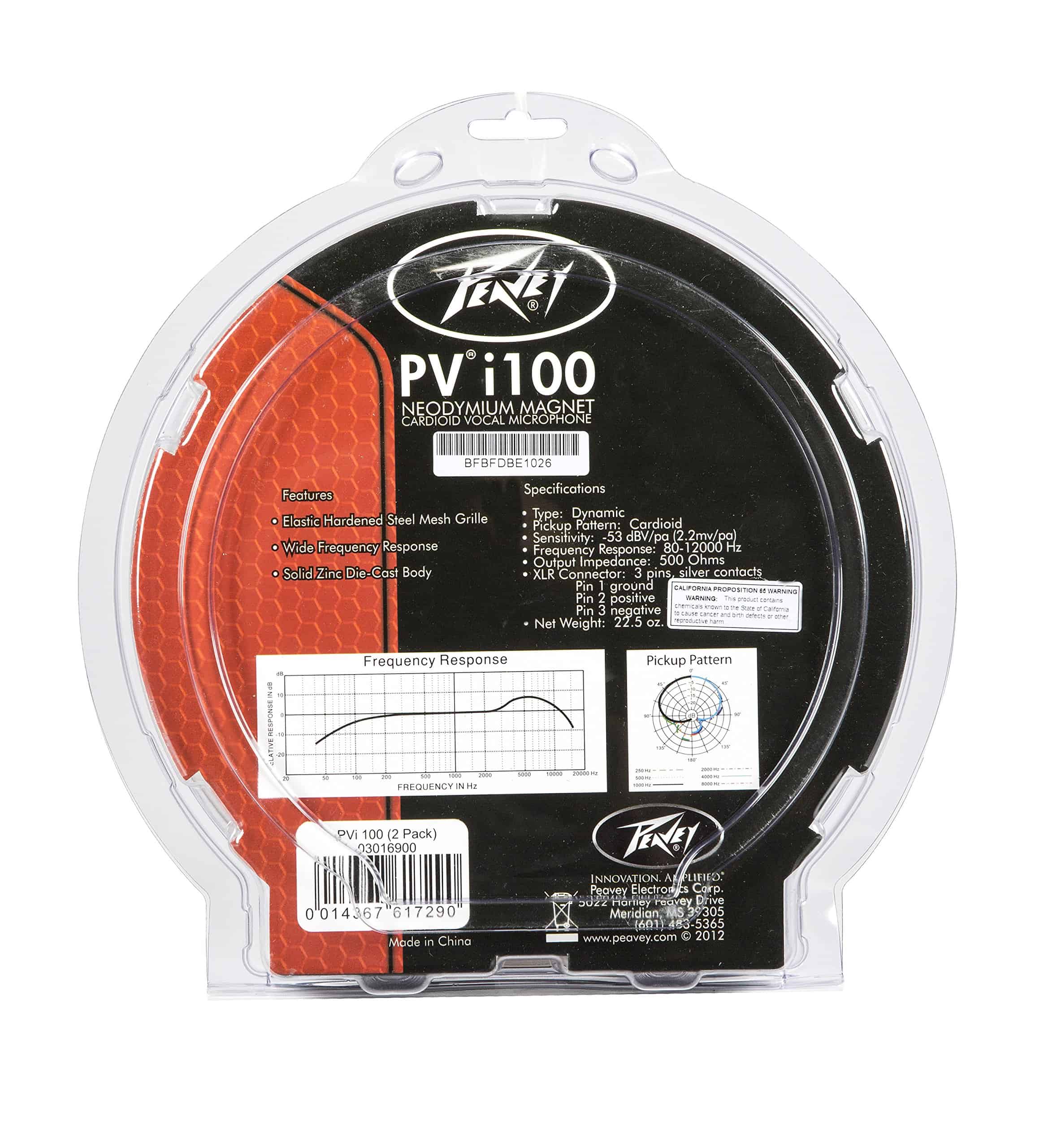 Un micrófono cardioide dinámico, perfecto para voces, que incluye su propio cable XLR. El micrófono Peavey PVi 2W es un micrófono cardioide dinámico que tiene una coloración de tono constante y un delicado rango de alta frecuencia. Es una excelente opción para voces. Este micrófono vocal Peavey PVi 2 tiene una pantalla antiviento especialmente diseñada con anillo de goma para absorber impactos, un interruptor de encendido/apagado, e incluye un cable de micrófono XLR de 6 metros. También incluye una bolsa de transporte y un clip para micrófono.
